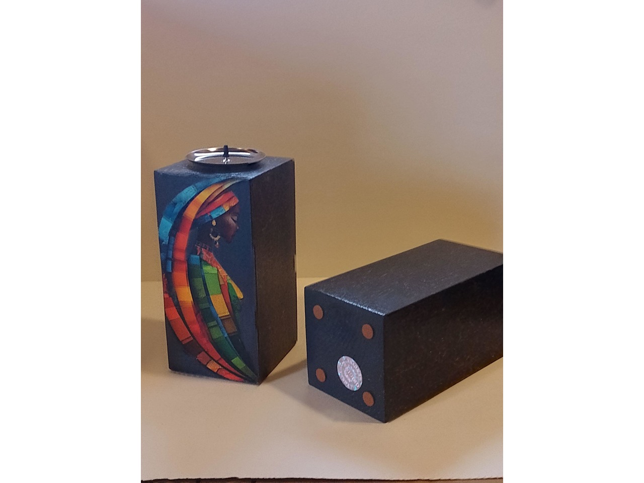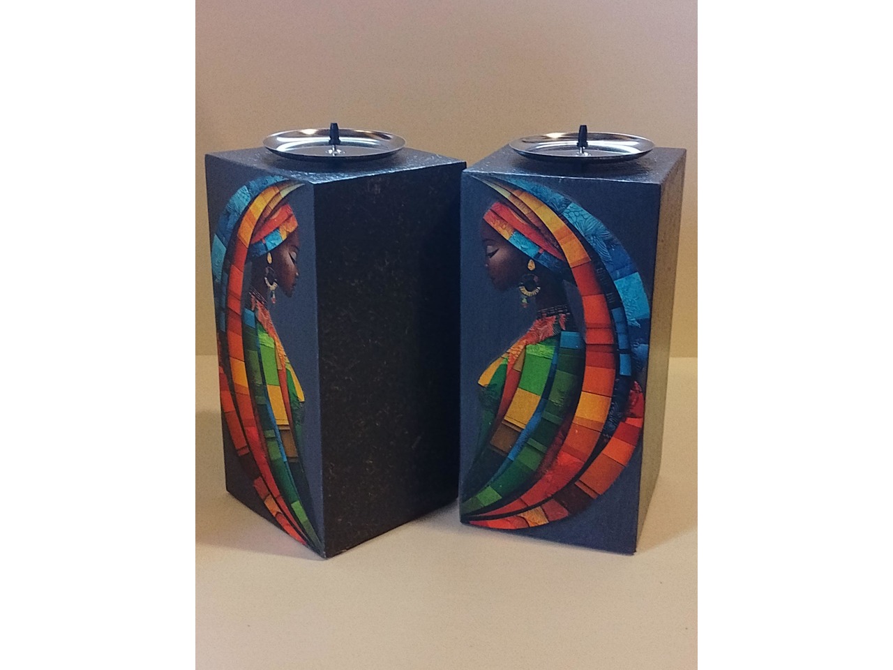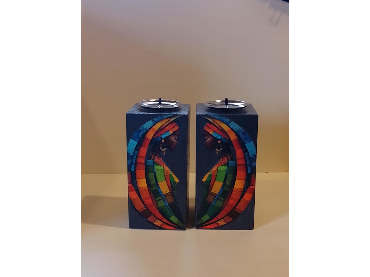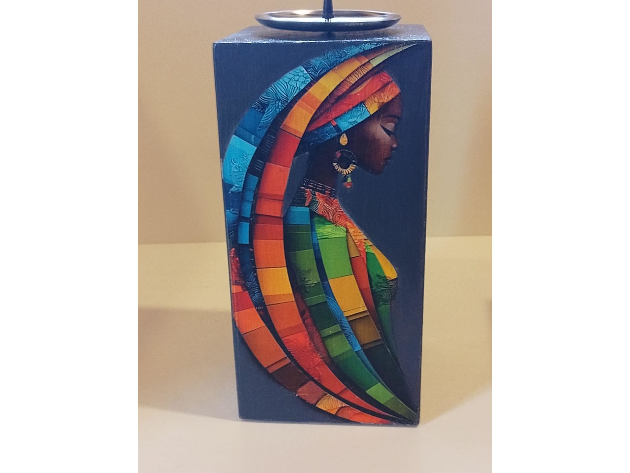 Подсвечник в этно стиле. Яркие краски рисунка подойдут для интерьера в любой цветовой гамме Основной цвет - графит.Очень популярный сегодня.