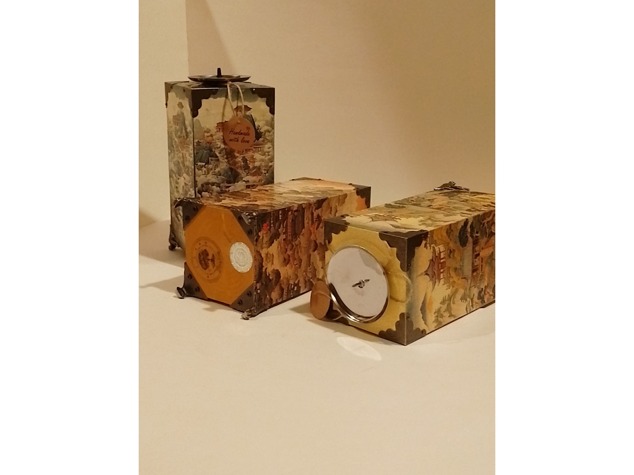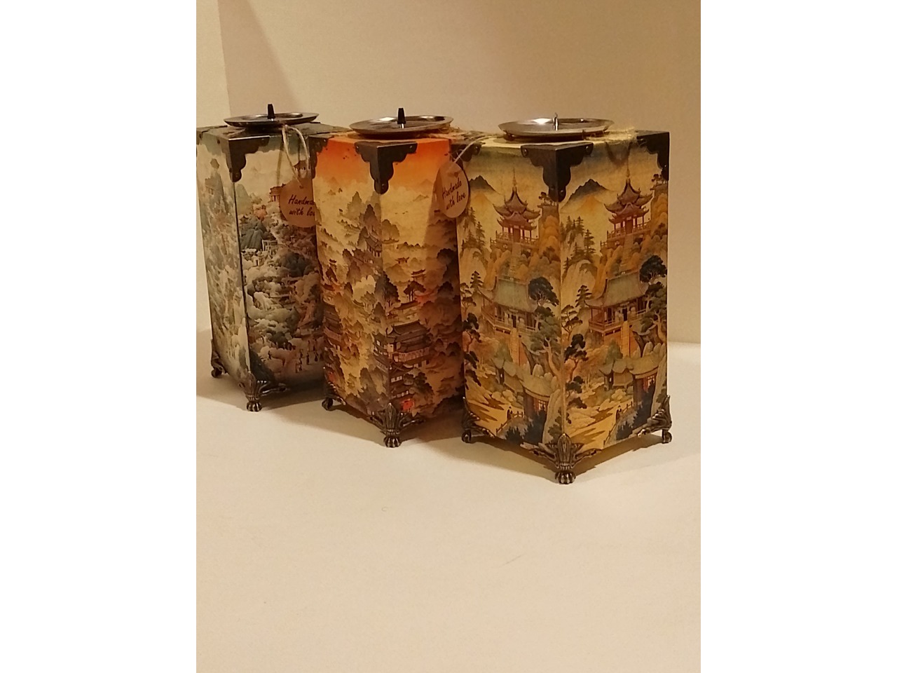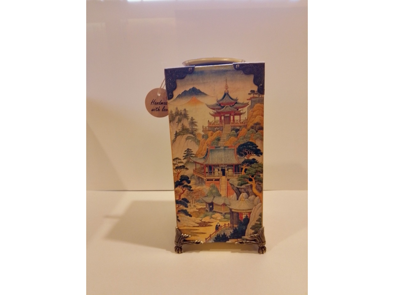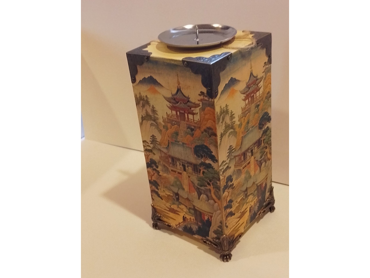 Подсвечник выполнен в технике "вживление"Рисунок в японском стиле нанесен на брусок цельного дерева