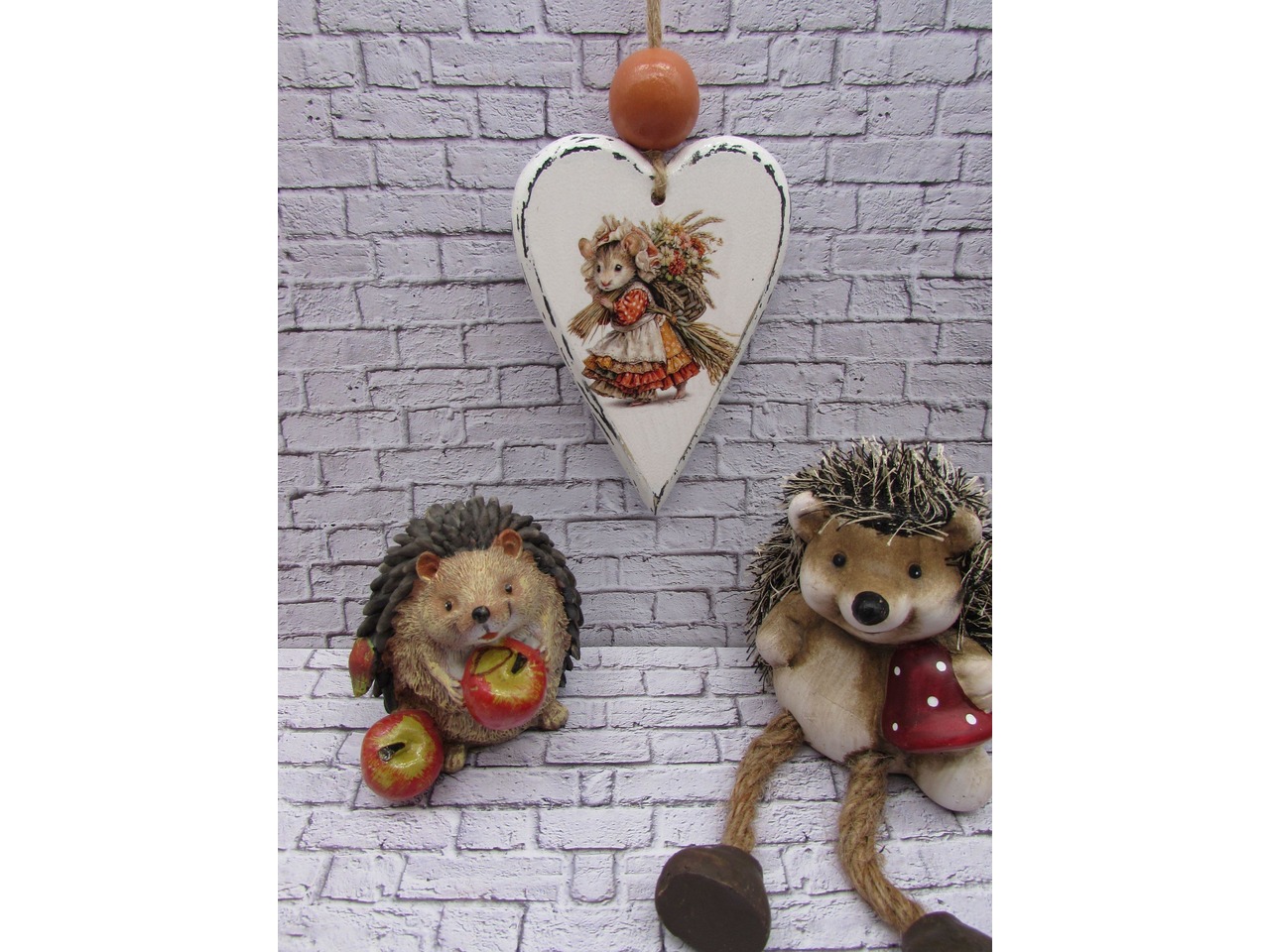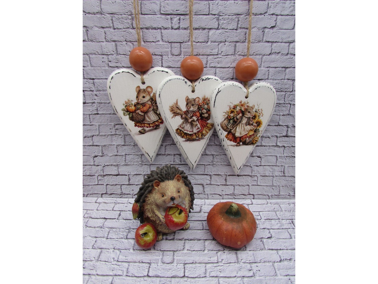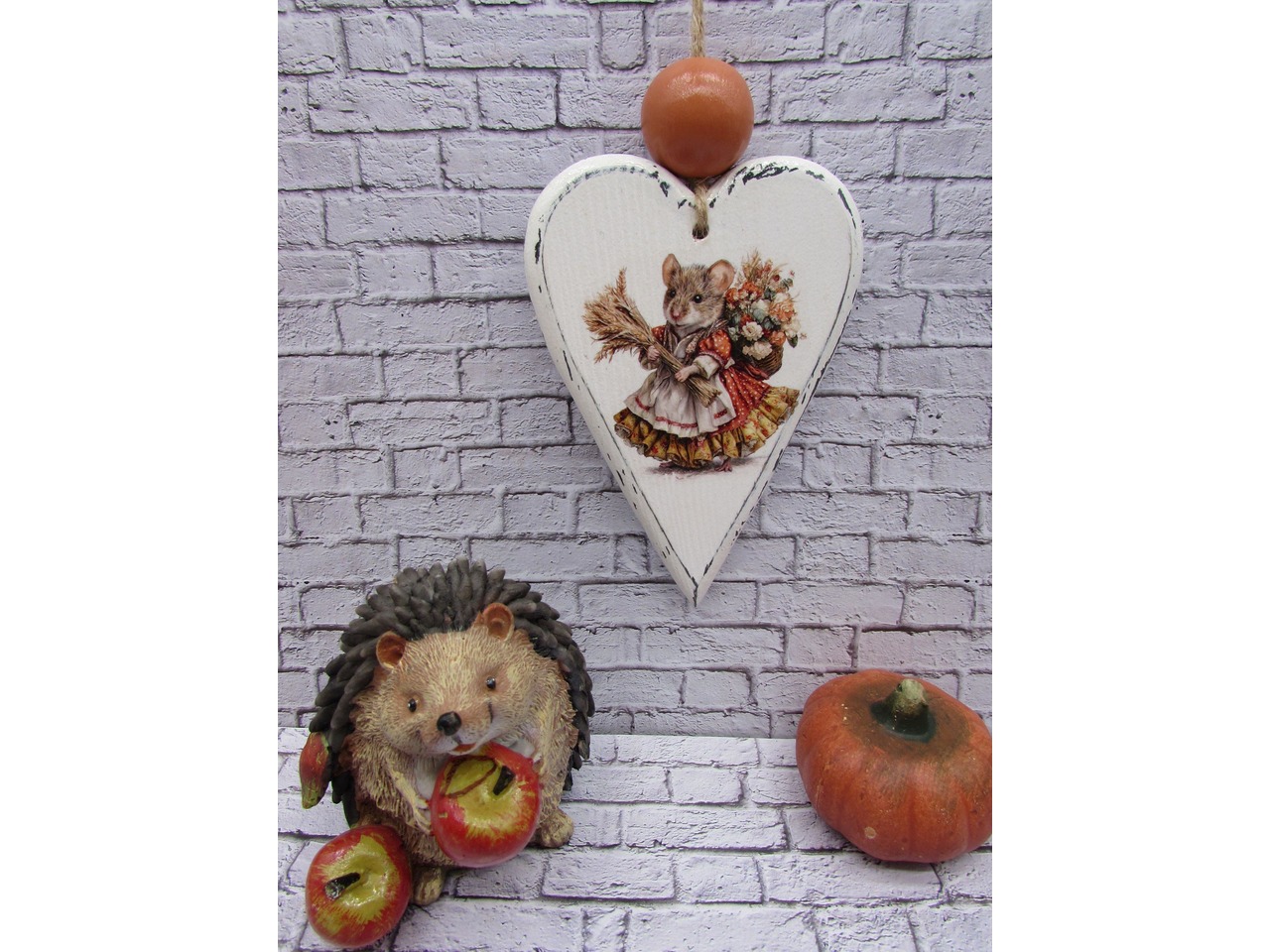 Древьяна підвіска у формі серця з милими мишками з двух сторін.Ніжна осіння прикраса,яка додасть дому затишку та тепла.