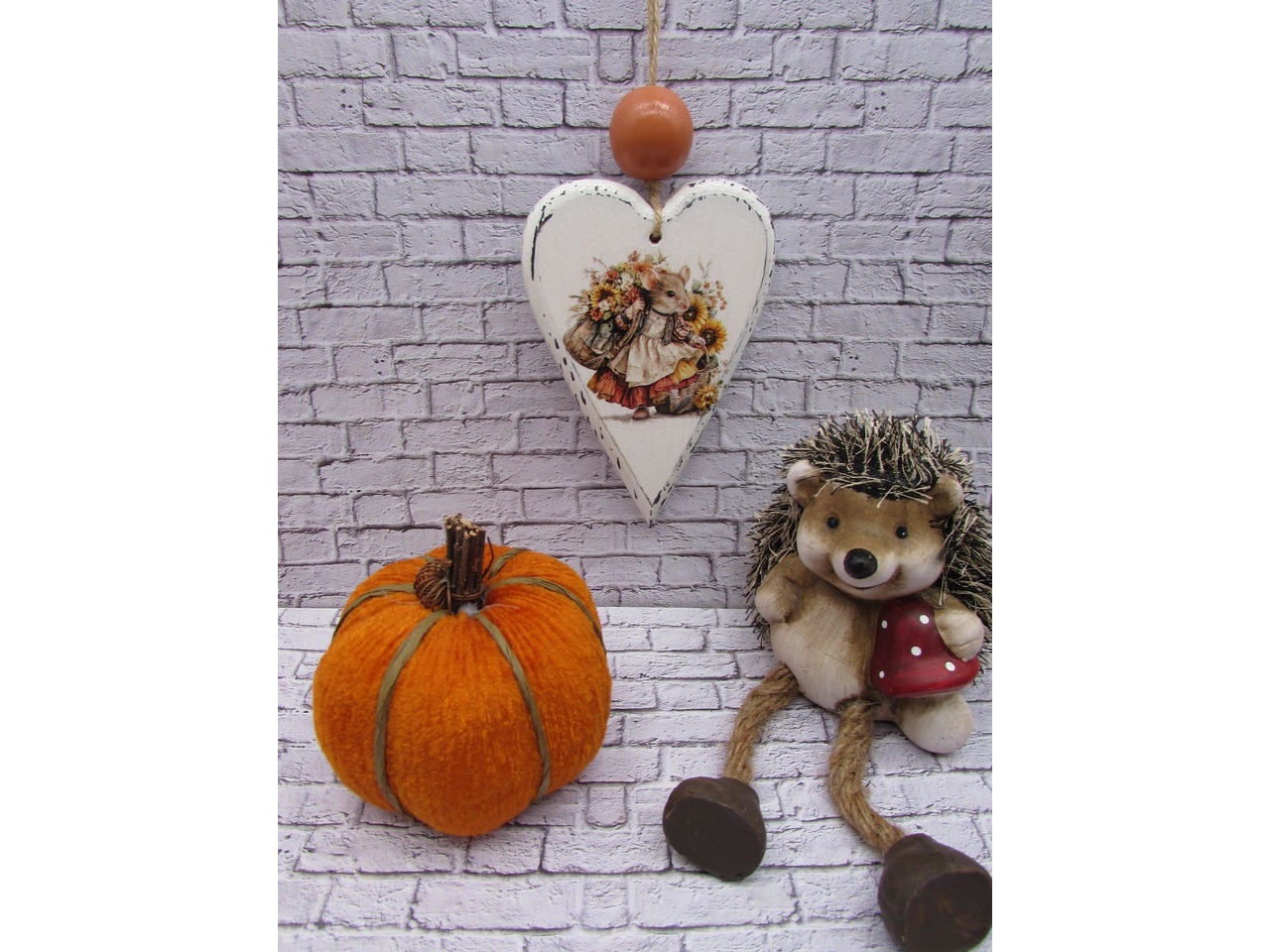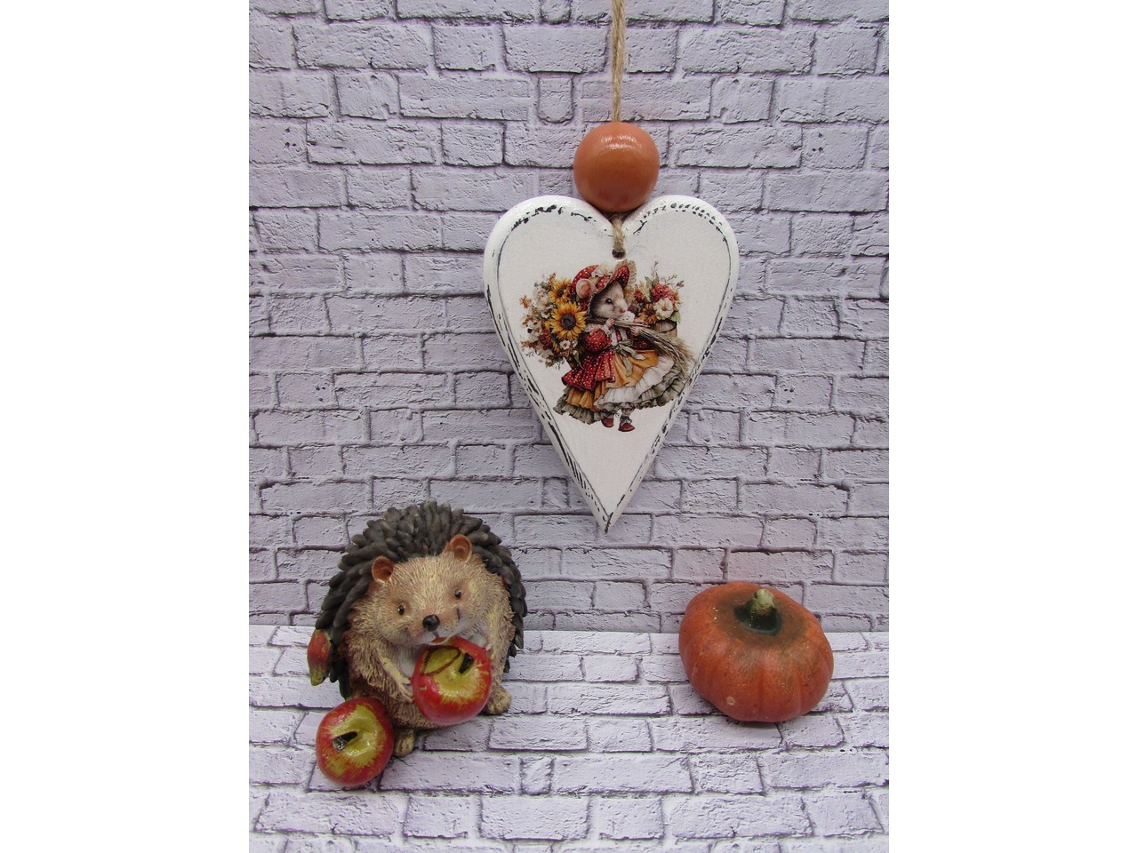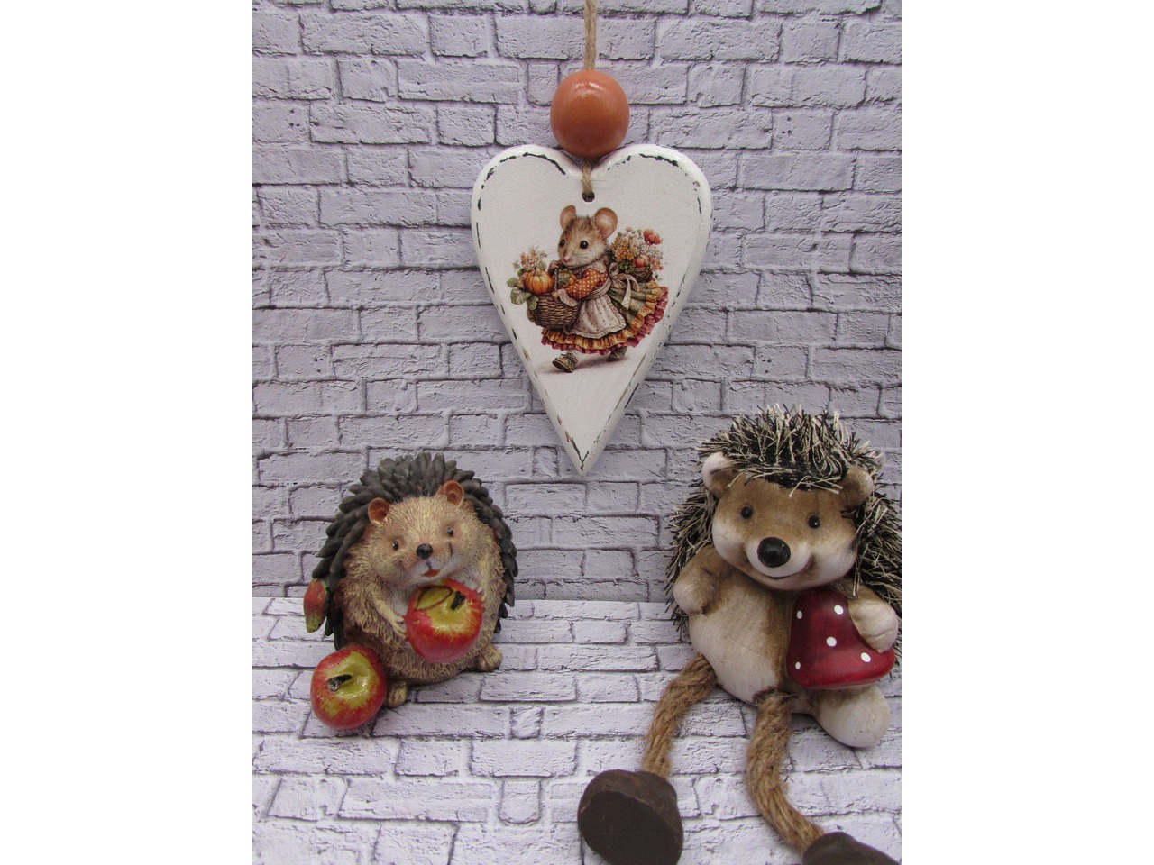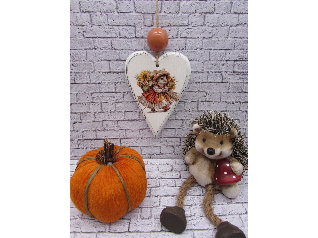 Древьяна підвіска у формі серця з милими мишками з двух сторін.Ніжна осіння прикраса,яка додасть дому затишку та тепла.