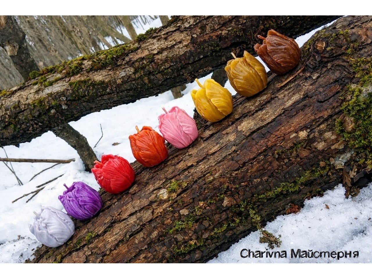 Естетика квітів на снігу - як витончений символ переходу від холодів, що здаються впертими та вічними, до молодого зеленого листя, теплого весняного сонця і оновлення на всіх рівняхСвічі-квіти виготовлені вручну з натурального бджолиного воску. В наявності і доступні для замовлення. Такі не знайдеш у магазині!