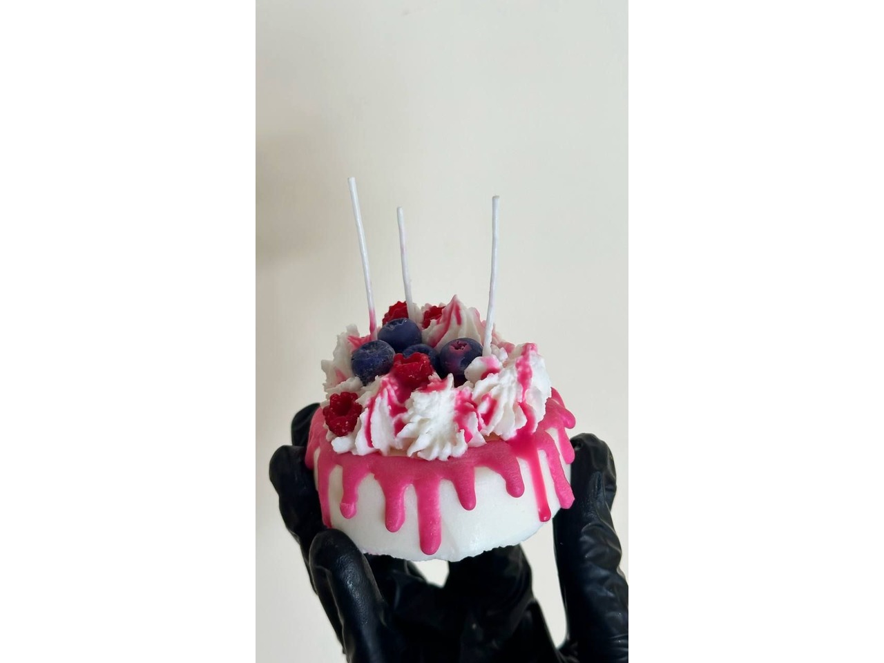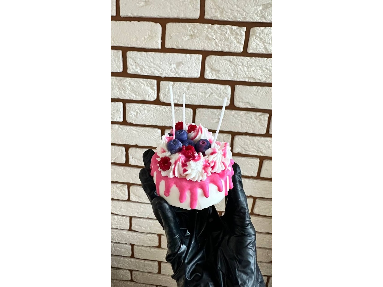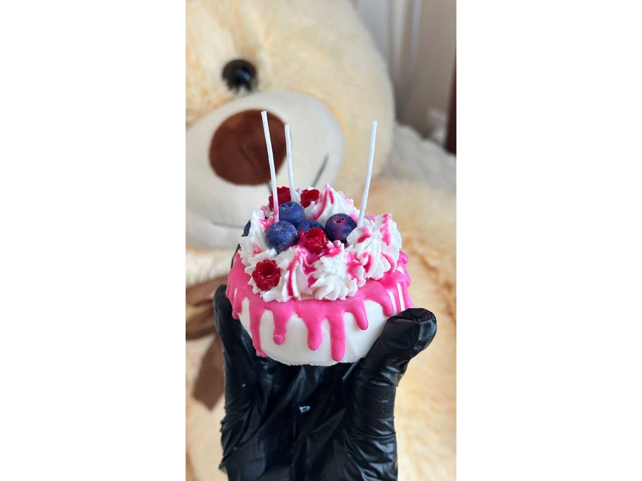 Шукаєте ідеальний подарунок або хочете додати затишку власному дому? Ця свічка виглядає настільки реалістично , що її легко сплутати зі справжнім тістечком. Повітряний крем, соковита рожева глазур та апетитні ягідки.100% натуральний соєвий віск.