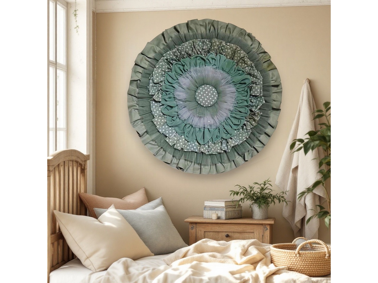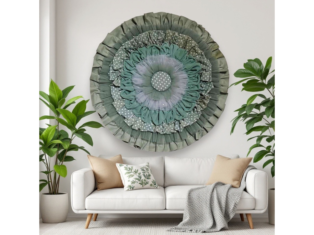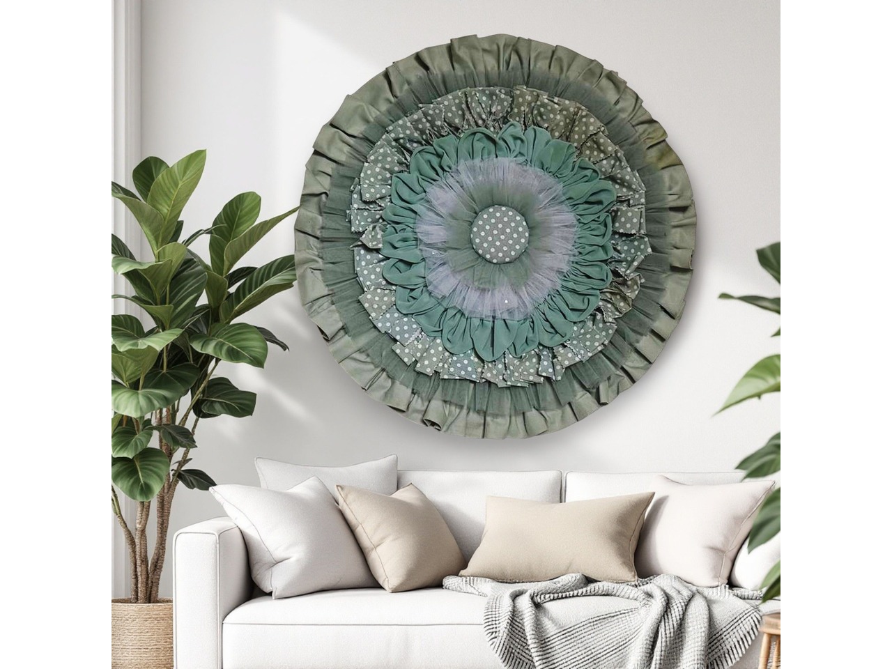 Круглий настінний декор у кольорі шалфей, діаметр 60 см
