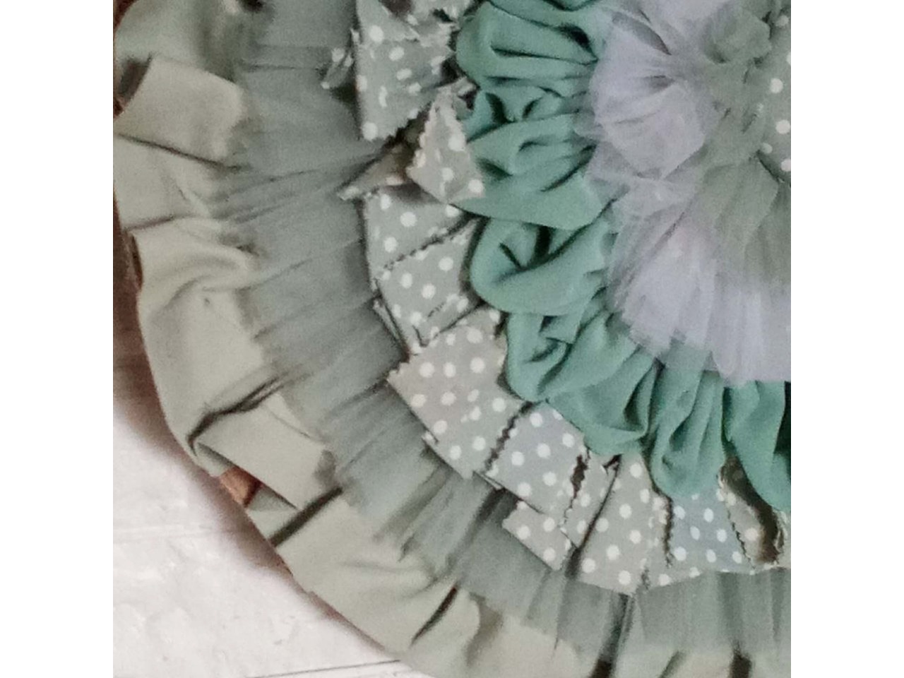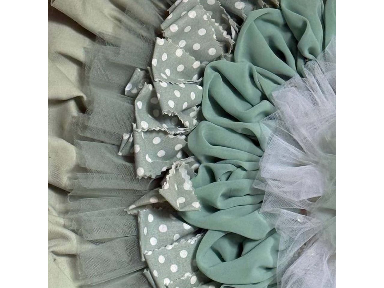 Лицьова частина прикрашена тканинами різної фактури — бавовною, фатином і шифоном, гармонійно підібраними в єдиній кольоровій гамі.
