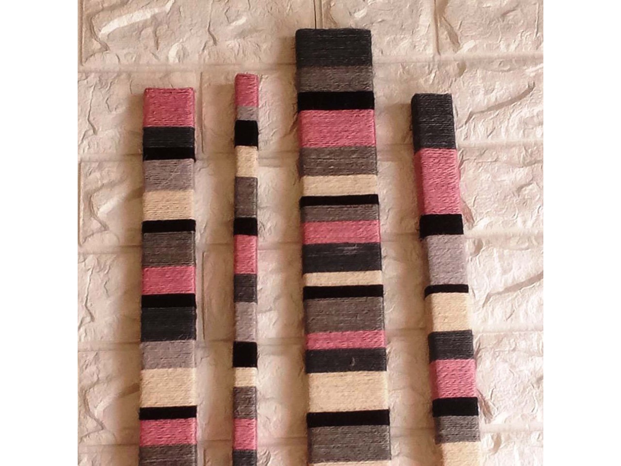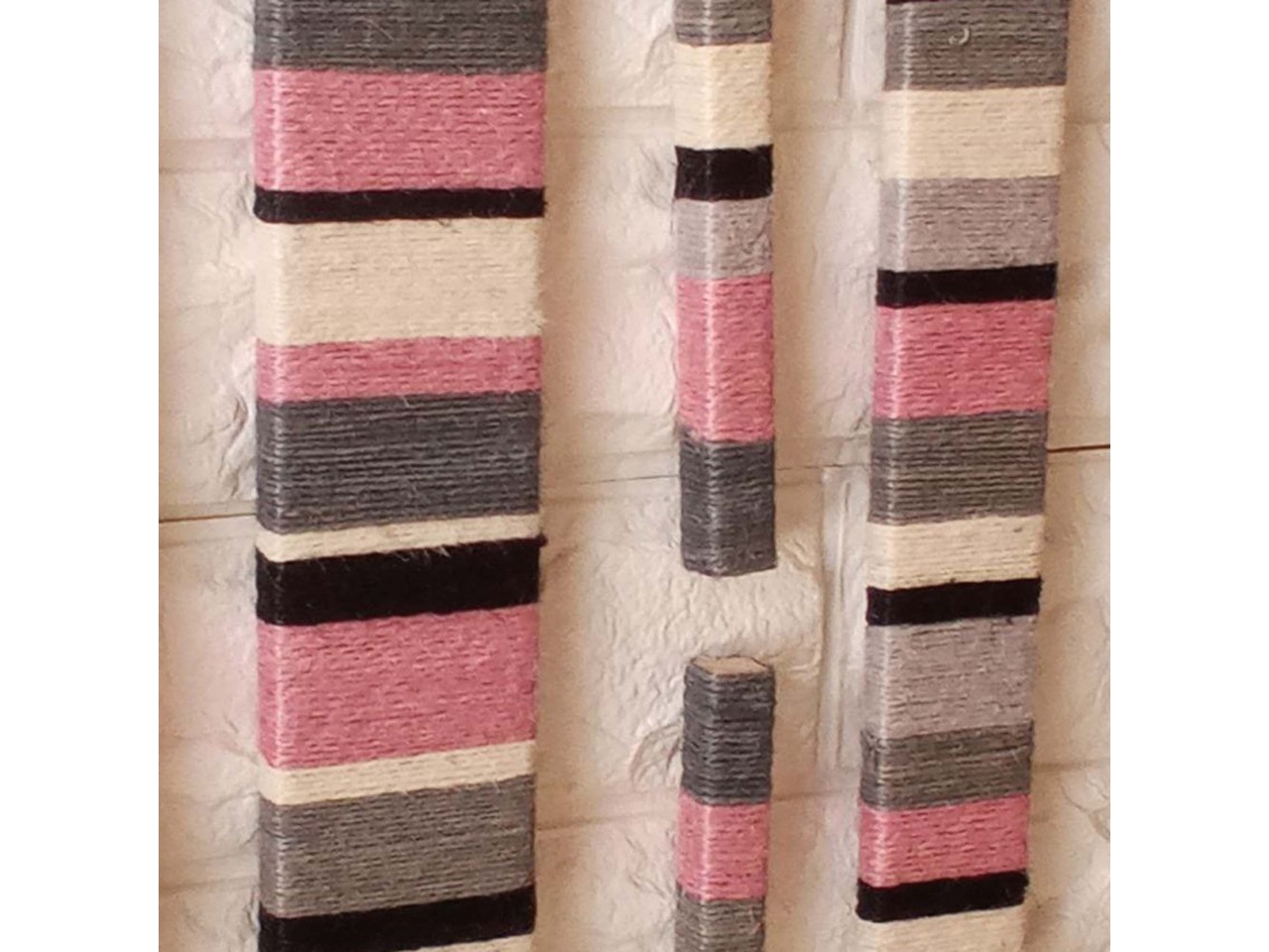 Кожна планка виготовлена з дерева та оброблена кольоровим джутовим шпагатом, що додає виробу фактурності та тепла.