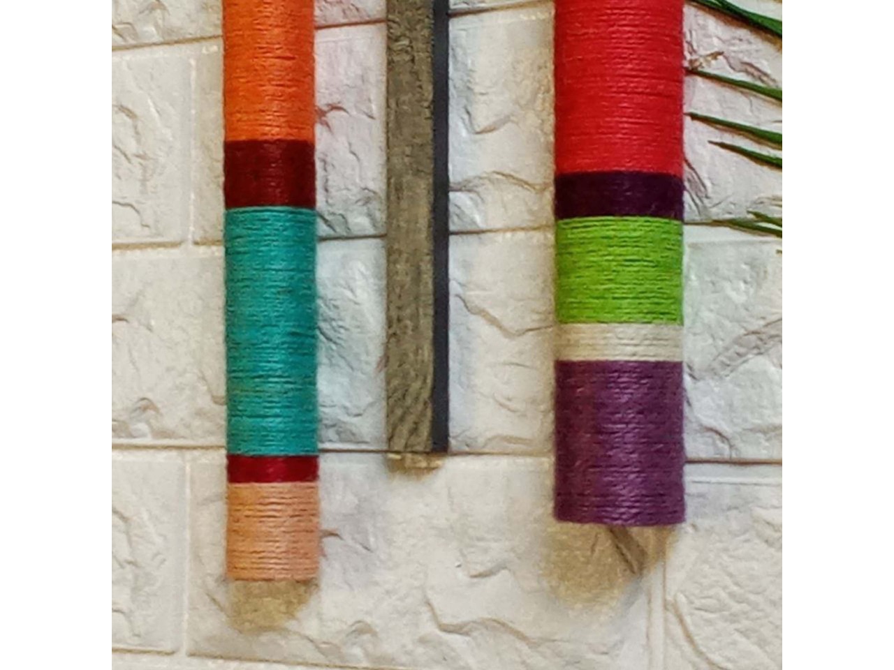 Труби оброблені джутовим шпагатом різних кольорів.