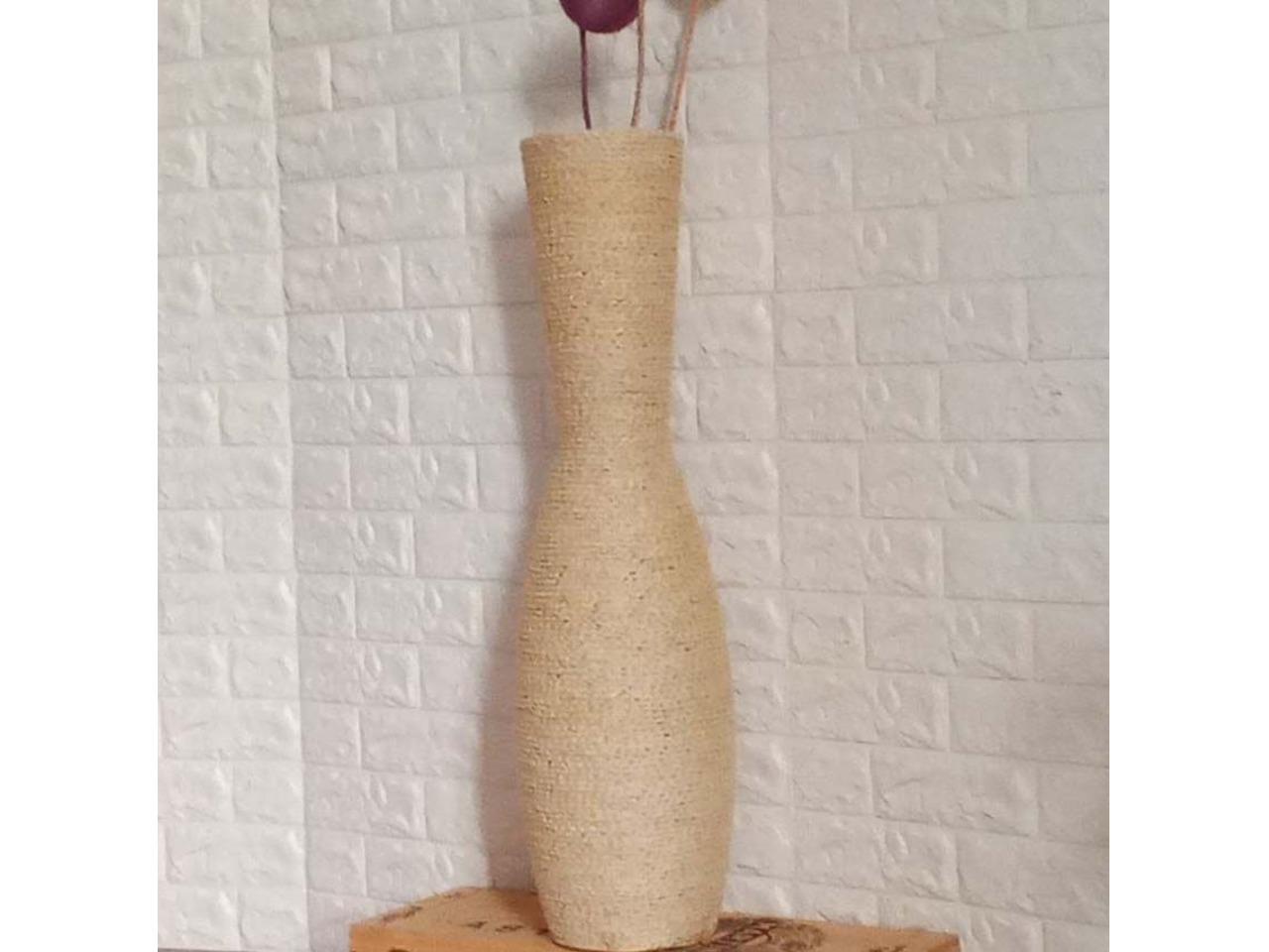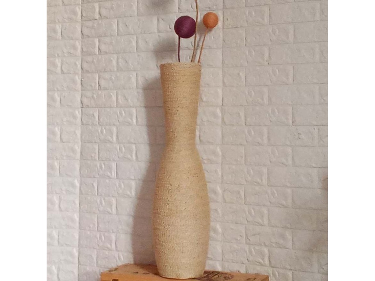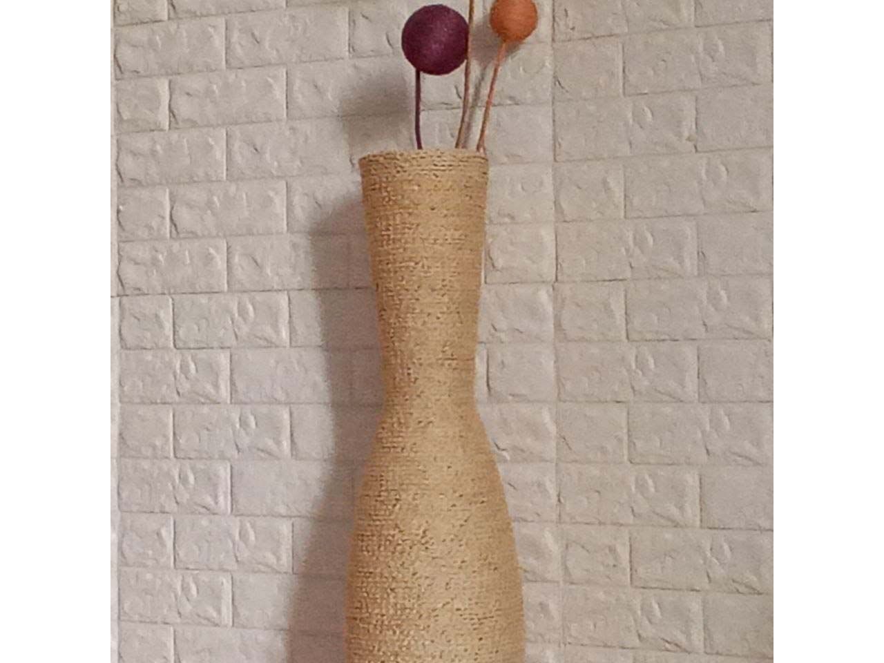 Основа вази - скло. Оброблена джутовим білим шпагатом (злегка молочного кольору).