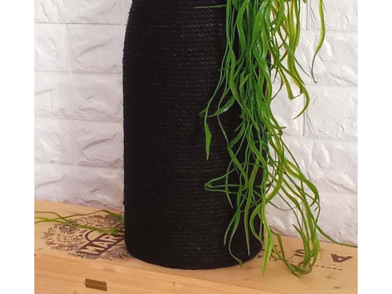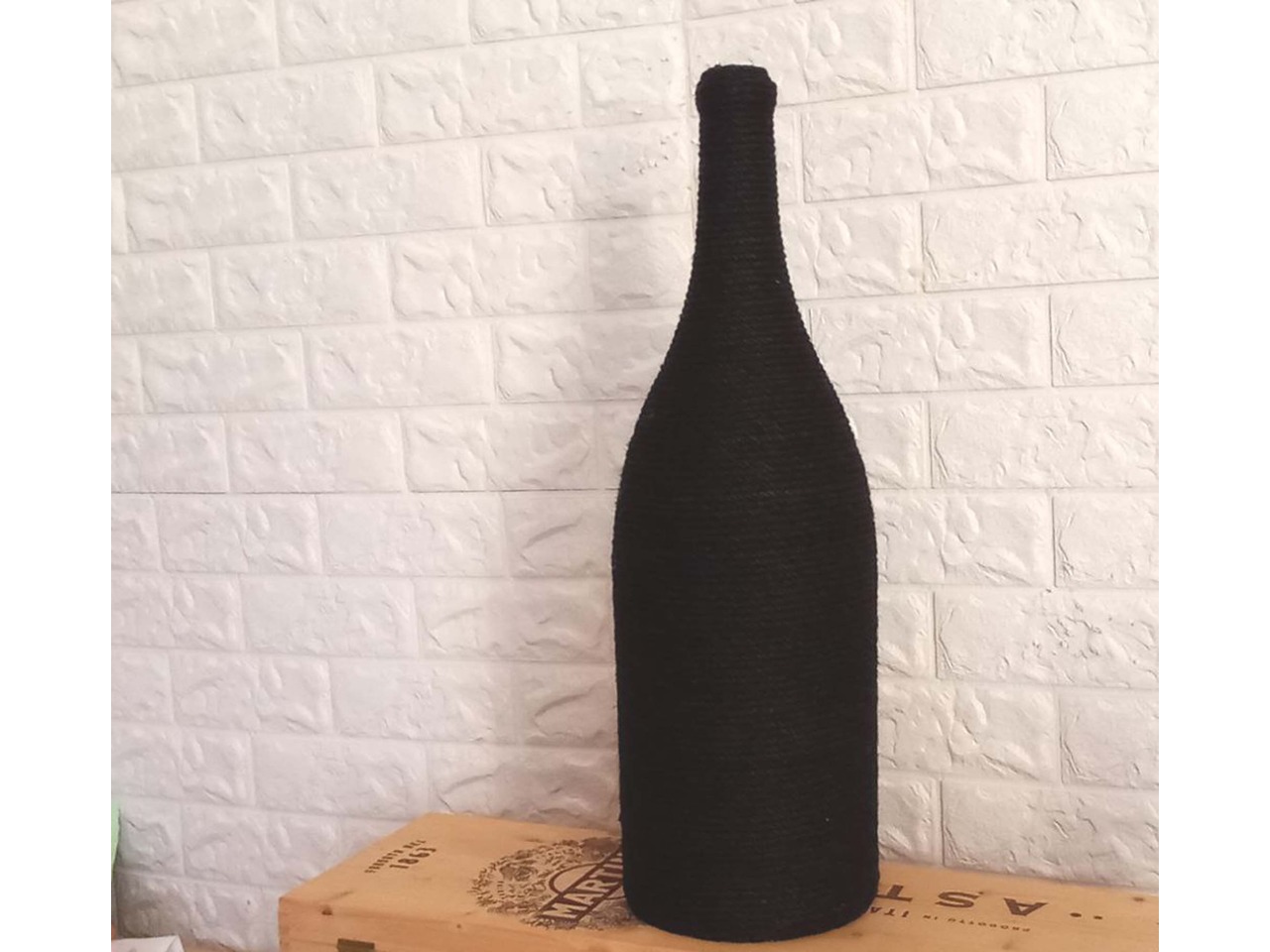 Її основою стала велика скляна пляшка з-під шампанського Martini об’ємом 6 літрів, яку майстерно оздоблено чорним джутовим канатом.