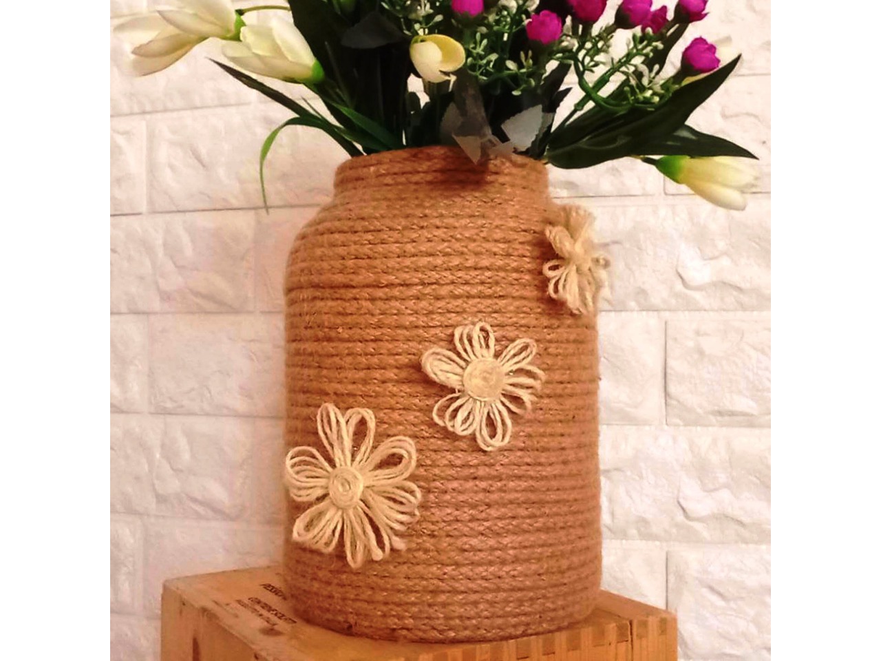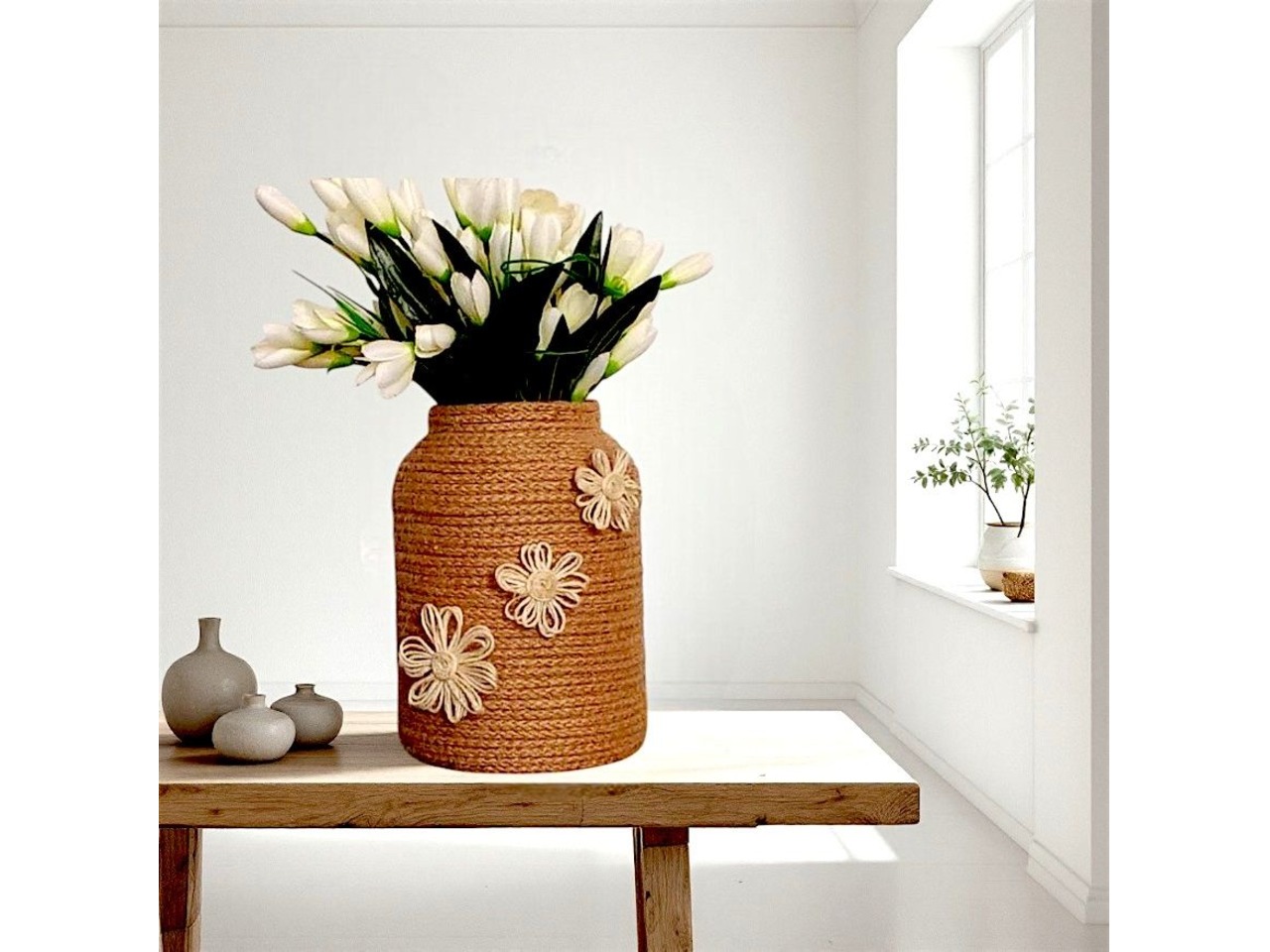 • Декор: джутовий канат та квіти з білого джутового шпагату