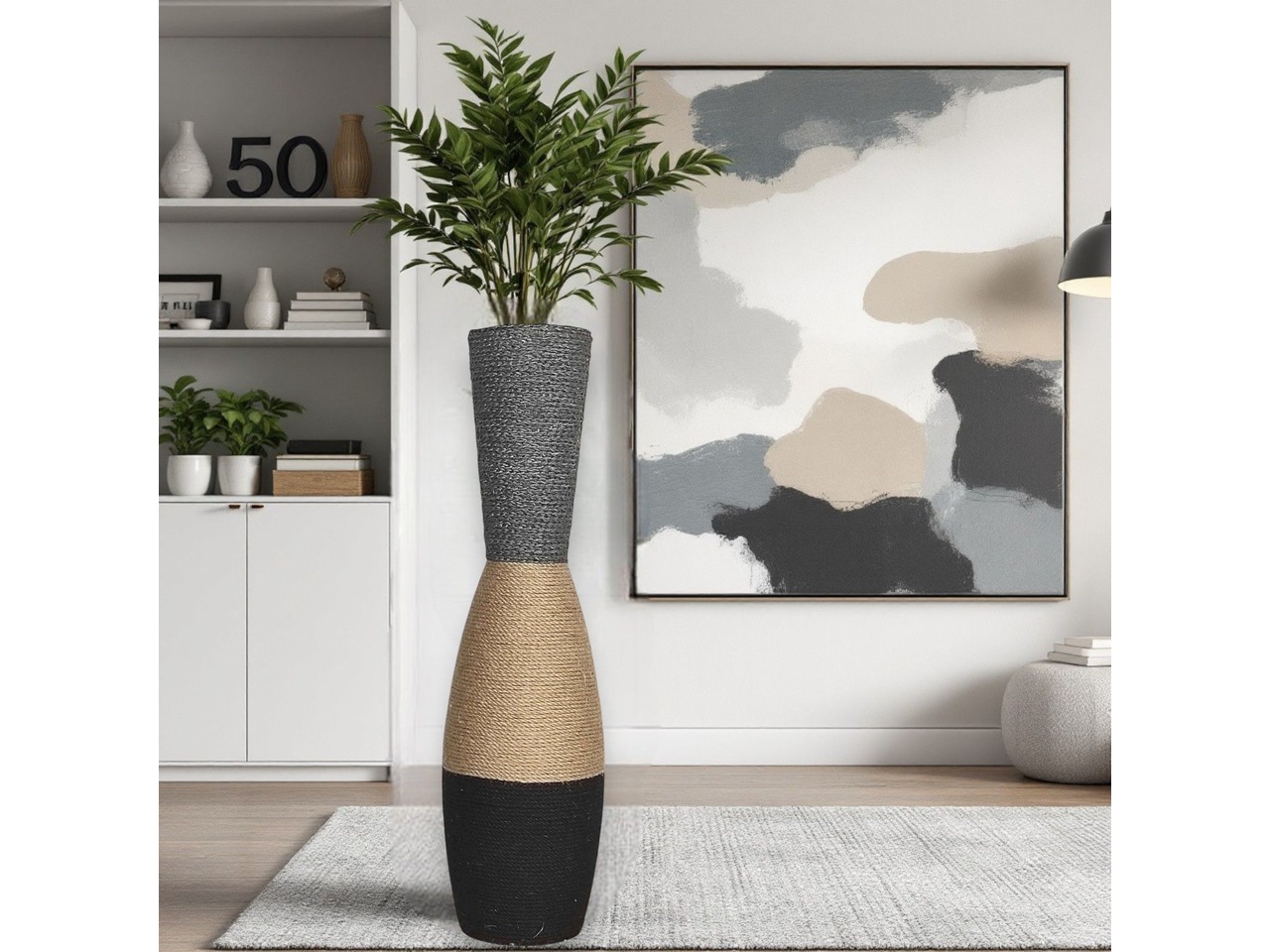 Висока підлогова ваза з джутовим декором (80 см) – рустик, бохо, лофт стильДодайте шарм та індивідуальність до інтер’єру з цією унікальною підлоговою вазою.