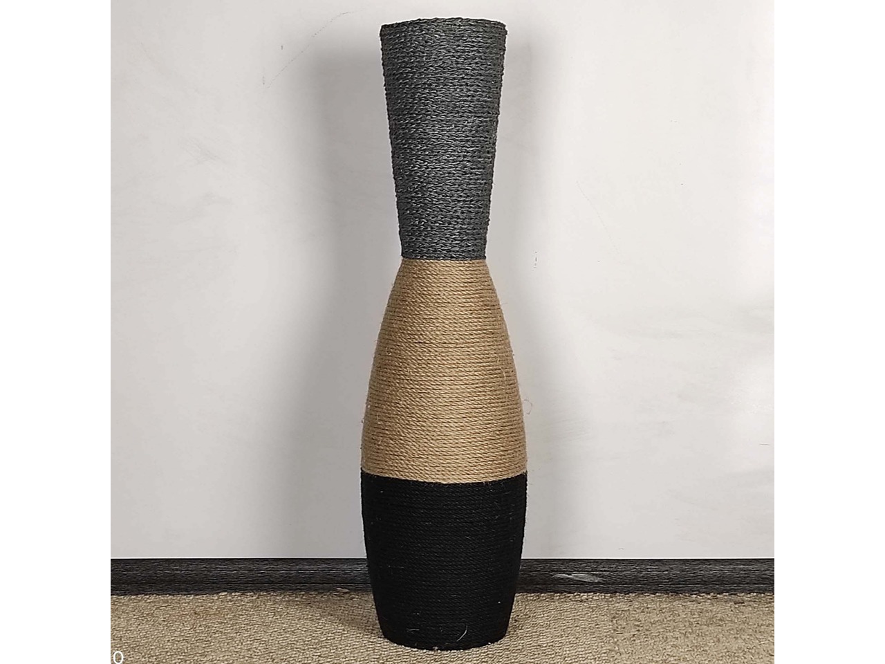 Висока підлогова ваза з джутовим декором (80 см) – рустик, бохо, лофт стиль