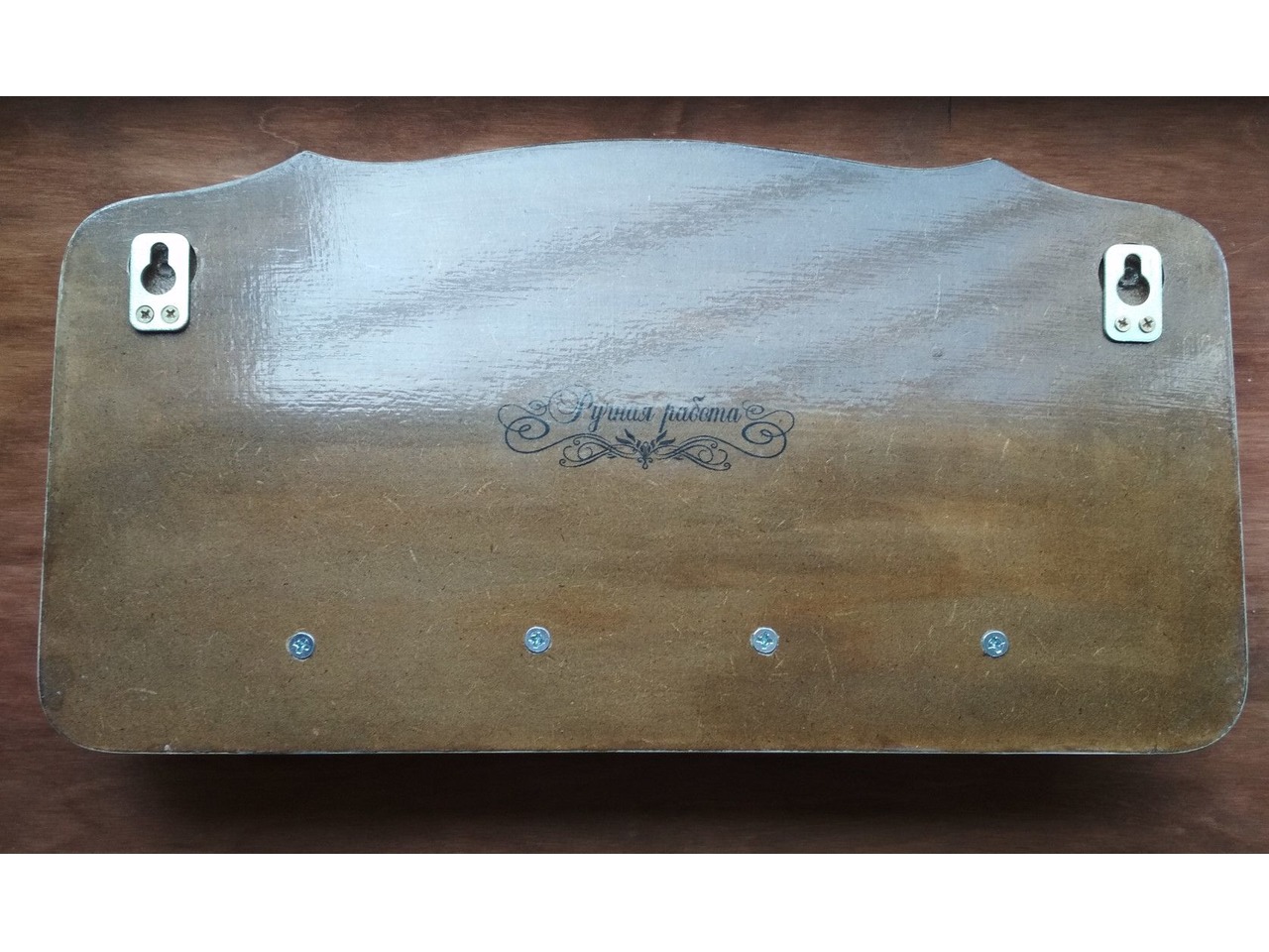 Винтажная настенная ключница на 4 крючка, выполнена в технике декупаж, искусственно состарена, кракелюр, трафаретный рисунок, элементы потали, основа дерево. Размеры примерно: ширина 16 см, высота 17 см, с крючками 20 см.. В работе использованы акриловые лакокрасочные материалы на водной основе. В р...