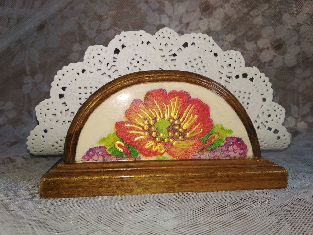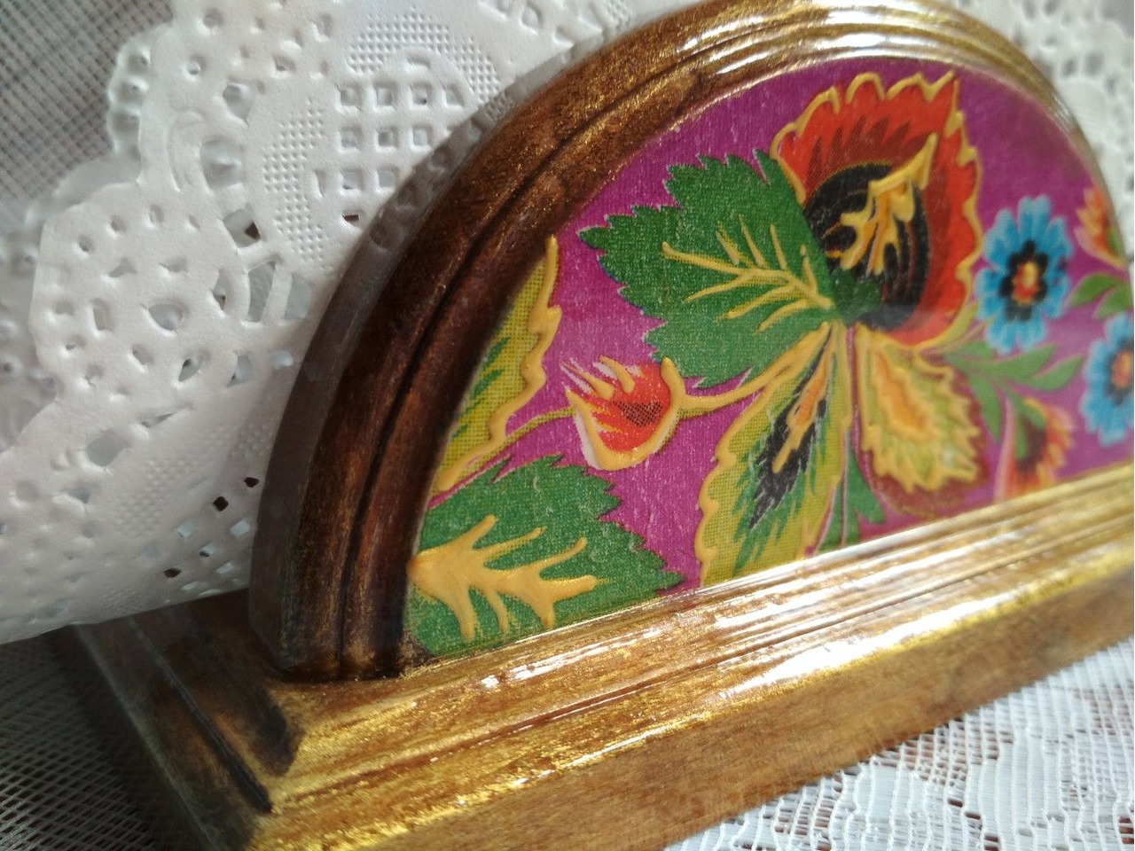 Деревянная салфетница выполнена в технике декупаж с элементами контурной росписи, тонирована золотой краской, размер 13*7*7 см. В работе использован акриловый глянцевый лак на водной основе. Цена указана без стоимости доставки, доставка оплачивается покупателем отдельно при получении.