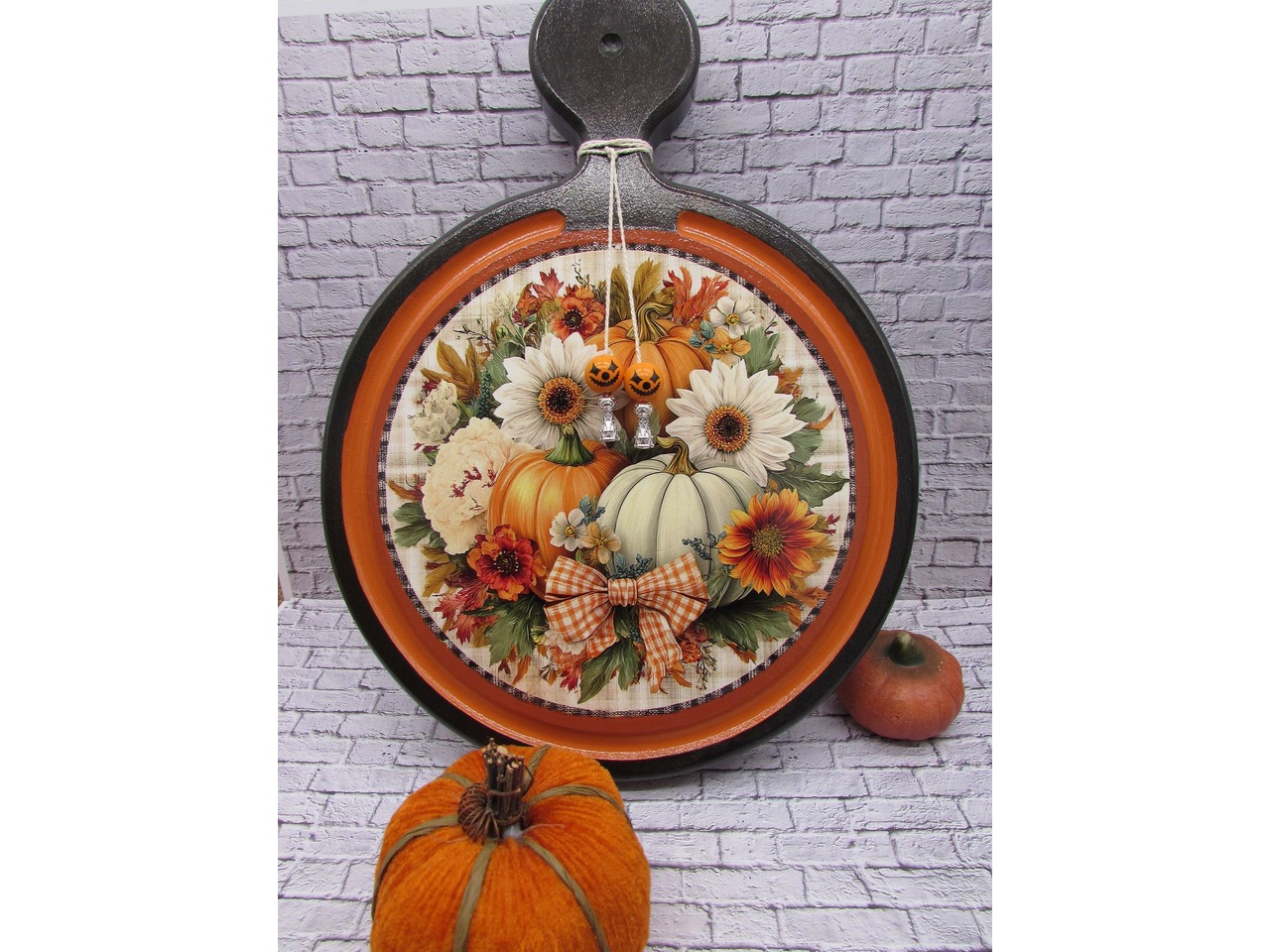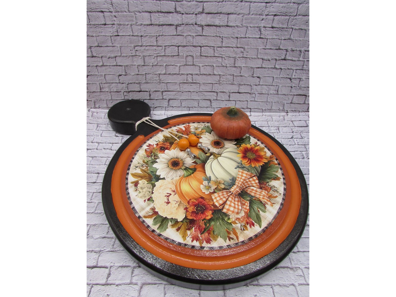 Декоративна дошка з яскравими гарбузами, квітами та осіннім бантом — ідеальний акцент для вашого дому цієї осені.Підійде для кухні, вітальні або як стильний подарунок друзям .