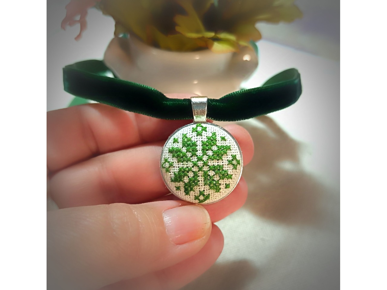 Материалы: Нитки ДМС, фурнітура під срібло , основа на шию - оксамитова стрічка.