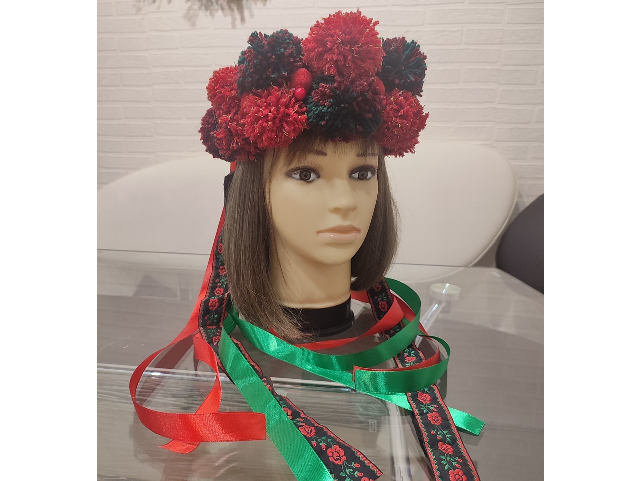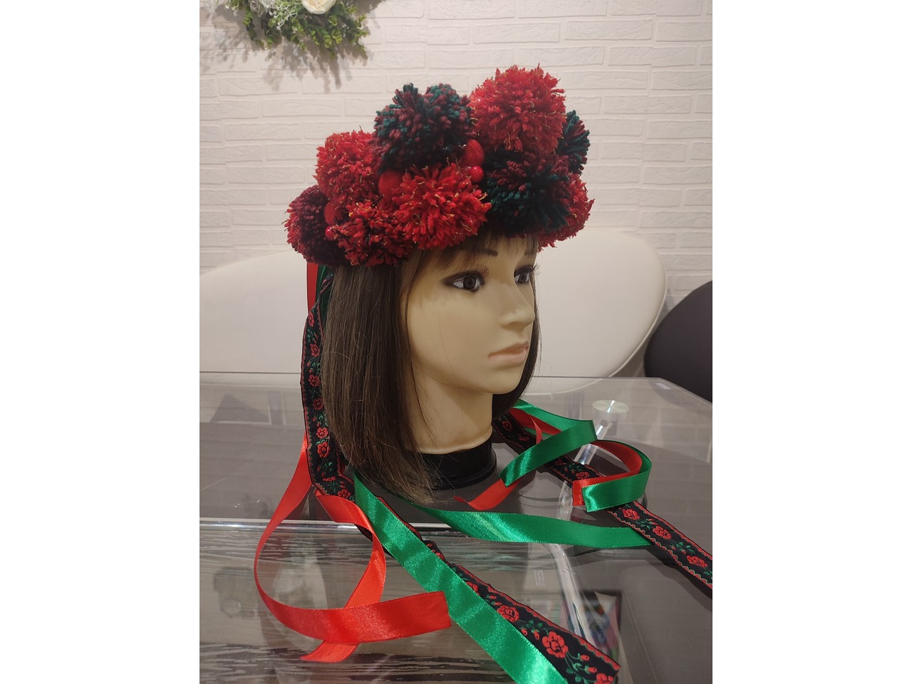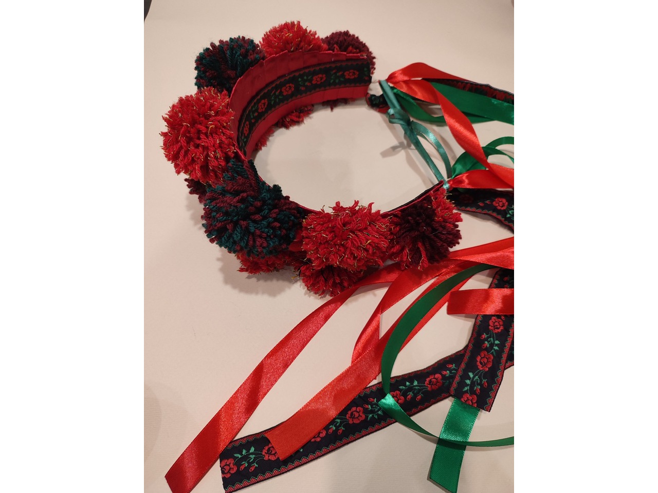 Об'ємний розкішний вінок ручної роботи виготовлений на твердій основі з великими помпонами та декорований стрічками в українському стилі - чудова етно прикраса для Вашого образу.Також можливе виготовлення на індивідуальні замовлення.