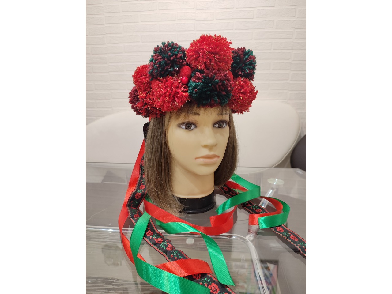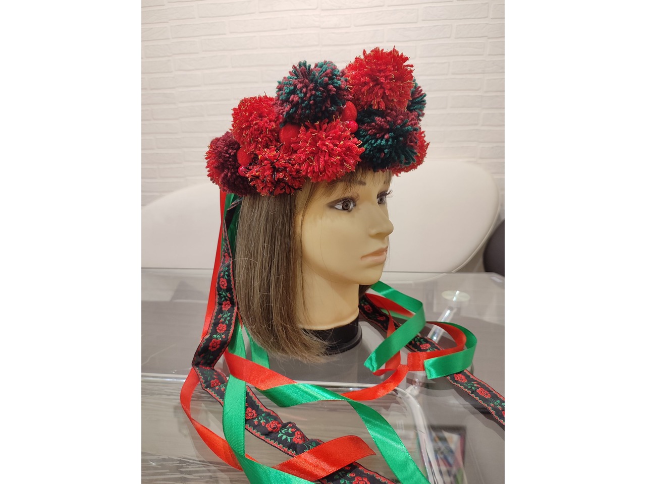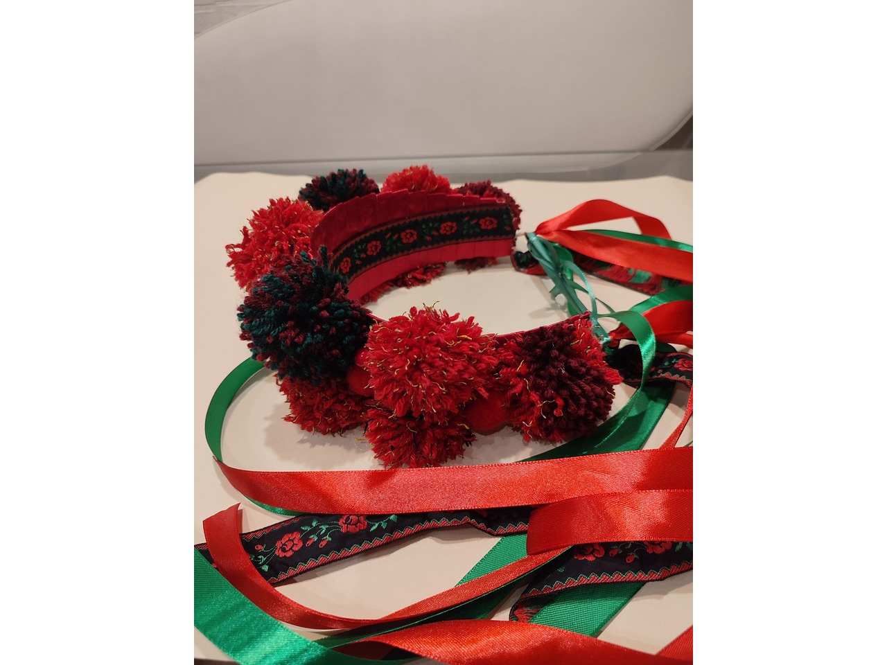 Об'ємний розкішний вінок ручної роботи виготовлений на твердій основі з великими помпонами та декорований стрічками в українському стилі - чудова етно прикраса для Вашого образу.Також можливе виготовлення на індивідуальні замовлення.