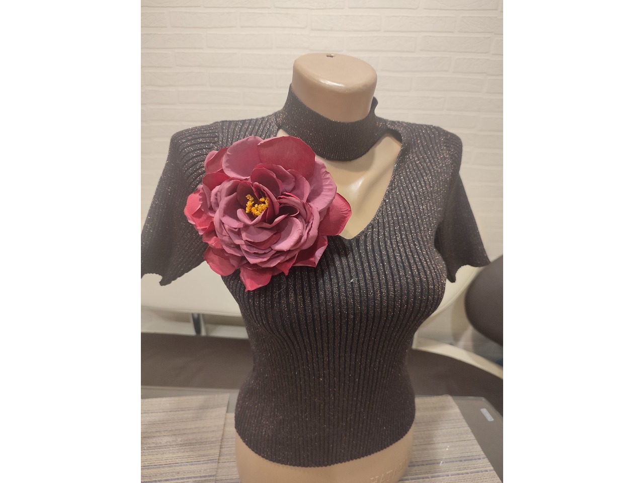 Кремова об'ємна квітка брошка ручної роботи - прикраса на одяг, шалик або пояс.В наявності є така квіточка в білом та бордовому кольорі.