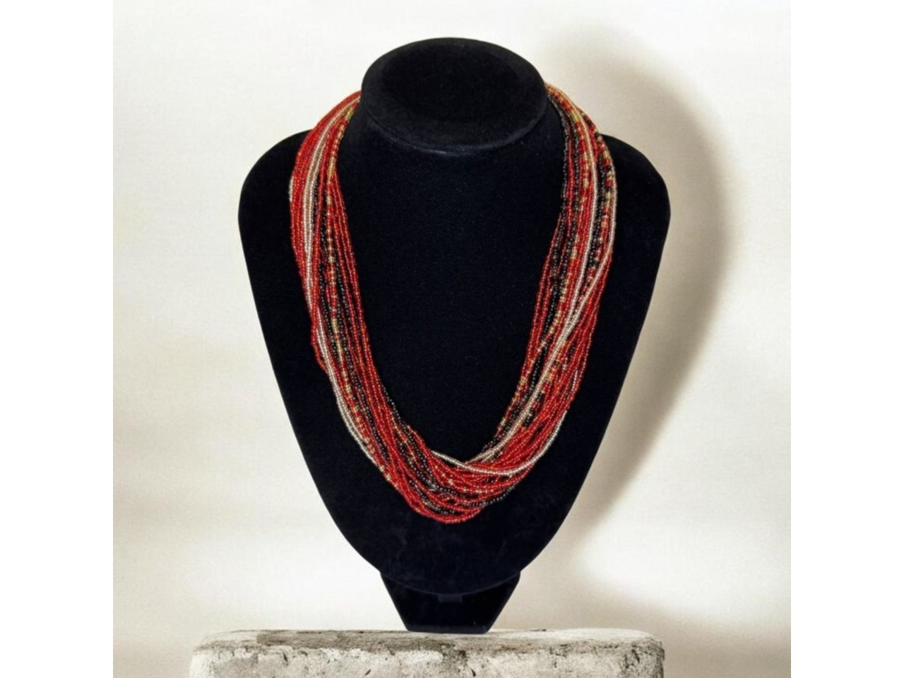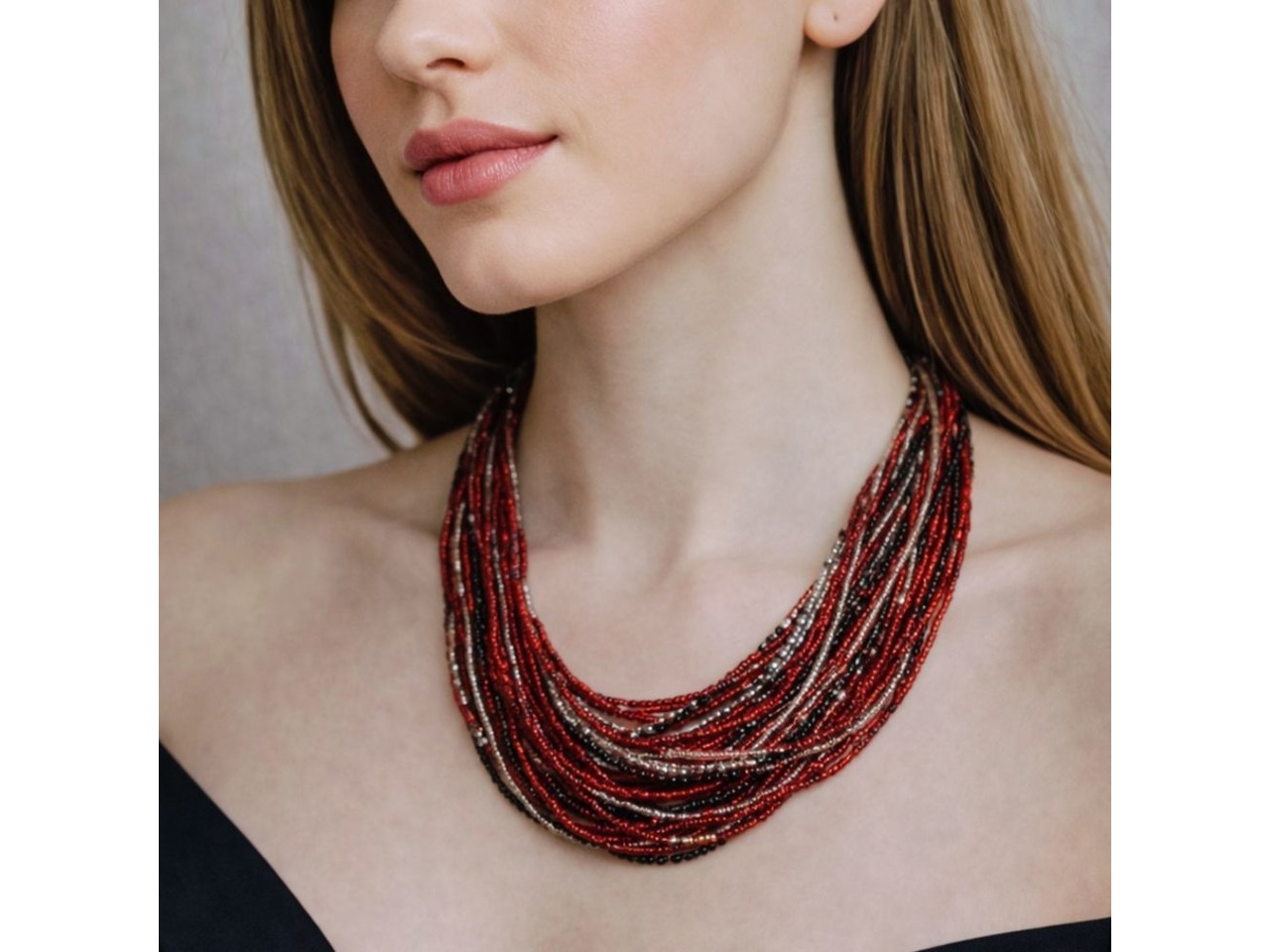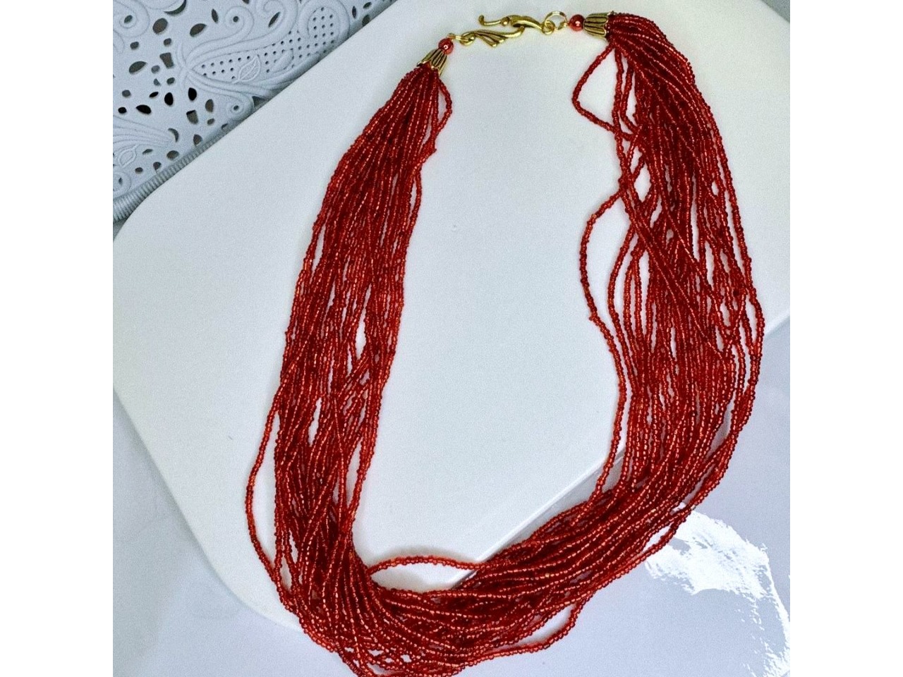 Витончена класика з глибоким змістом — багаторядне намисто з бісеру, яке поєднує у собі силу традицій та сучасну елегантність.Насичений колір символізує енергію, жіночність і внутрішню силу, а багатошарова форма створює ефект розкоші та об’єму. Це прикраса, яка миттєво привертає увагу та формує завершений образ.