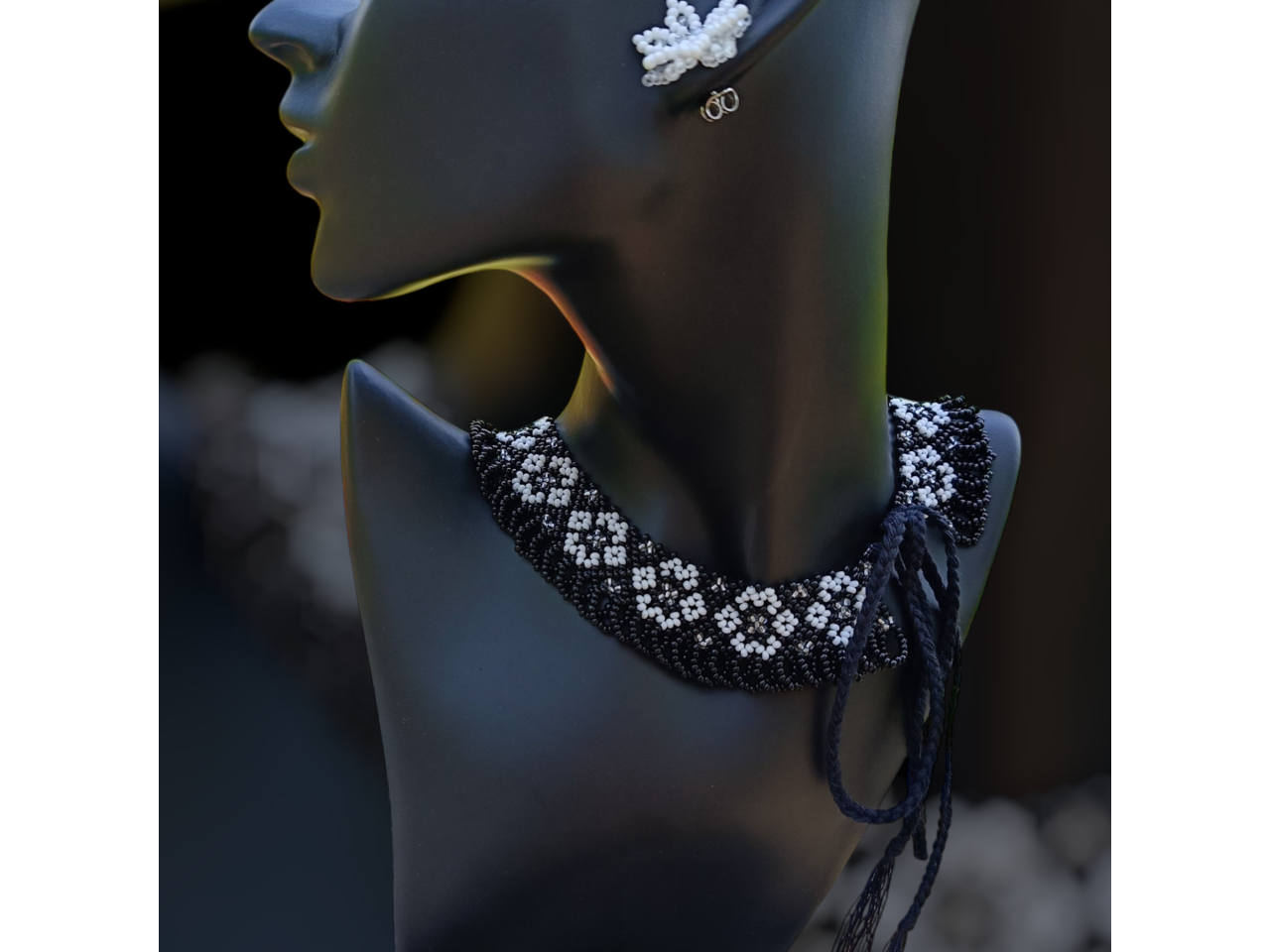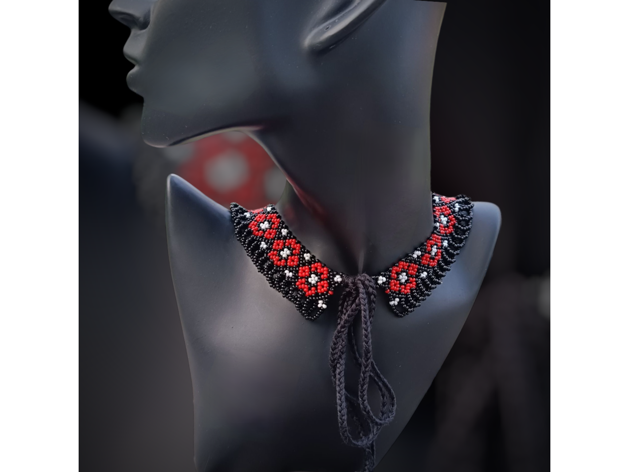 Ручна робота, створена з любов’ю до українських традицій. Ця витончена силянка з білого, червоного та чорного бісеру ідеально підкреслить жіночність, надасть образу етнічного шарму та стане яскравим акцентом у вашому стилі. Має зручні зав’язки, що дозволяють регулювати розмір.Розмір: Довжина ~ 32 см зав′язки по 30, ширина - 3 см.