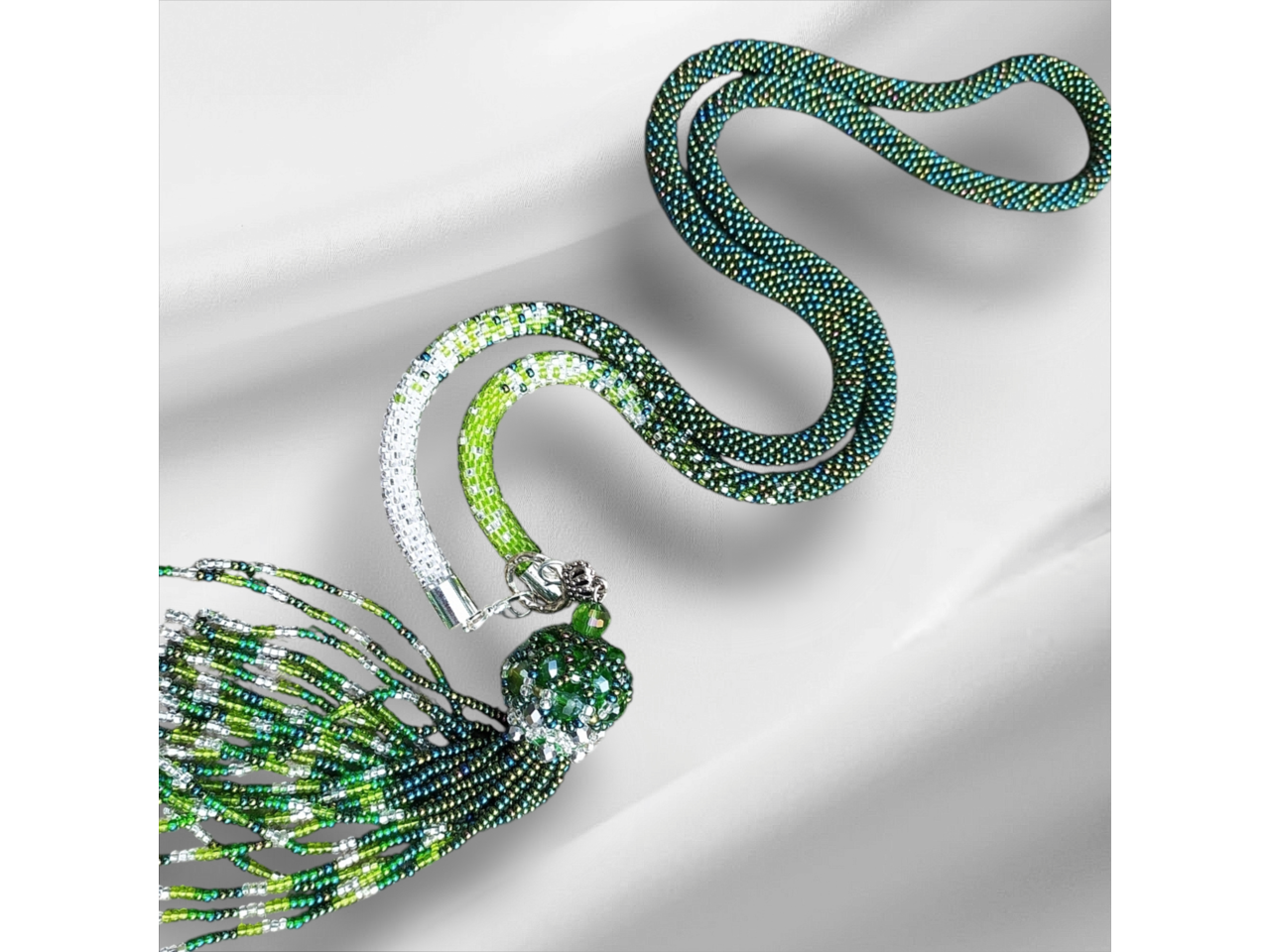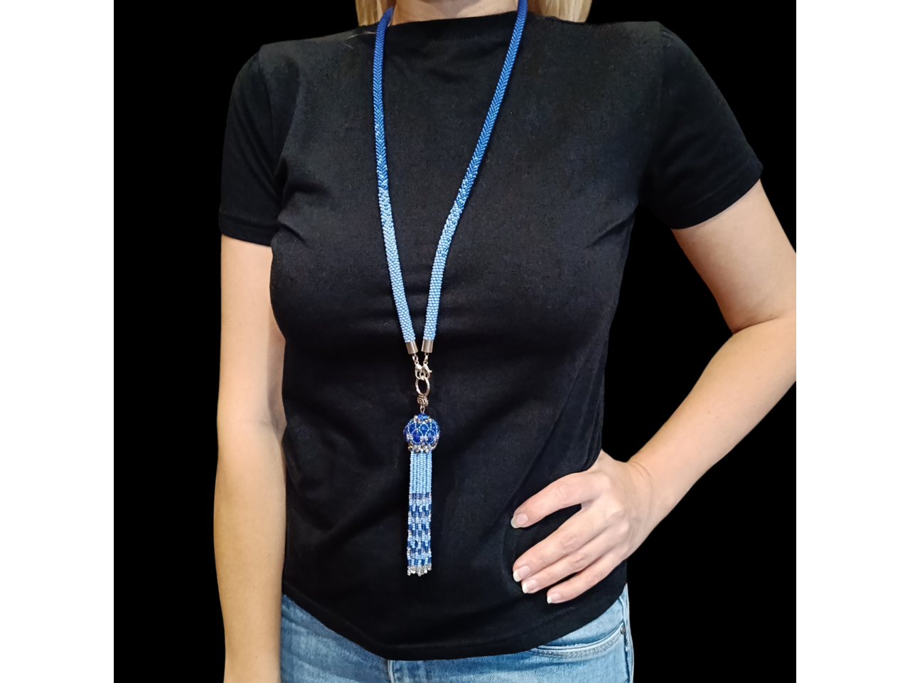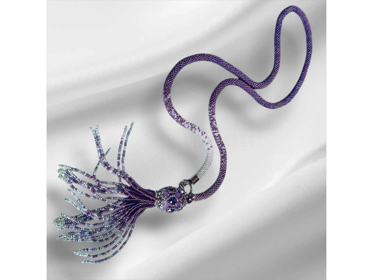Довге намисто зв′язане із чеського бісеру та намистин. Кисть з′ємна. Довжина намиста з підвіскою 57-59 см. До намиста можливе замовлення браслету. Більше інформації в повідомленнях.