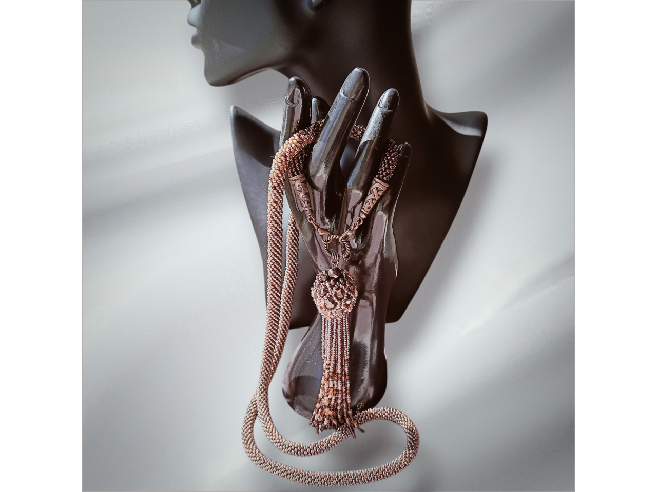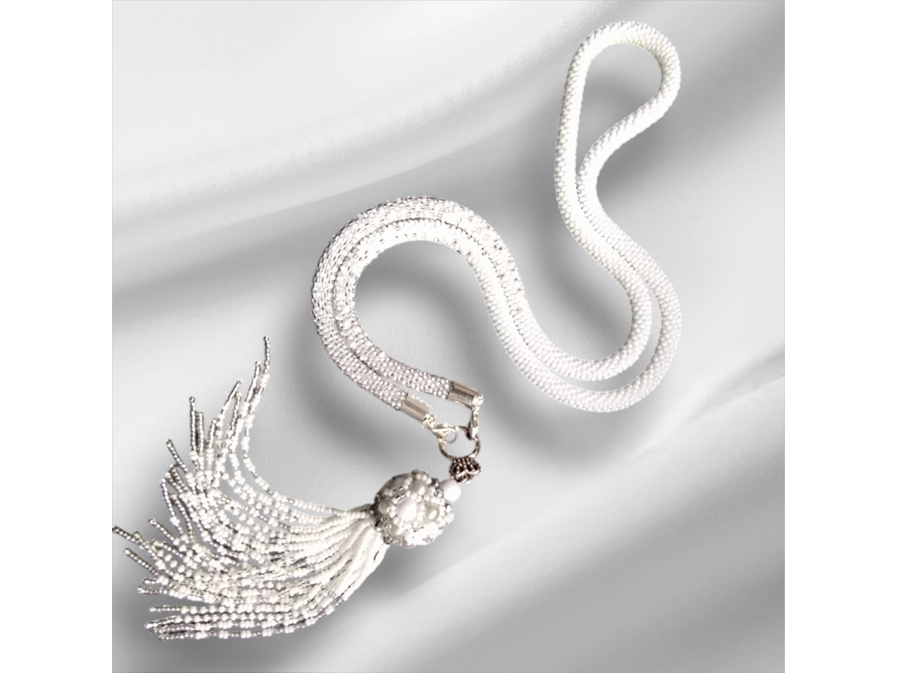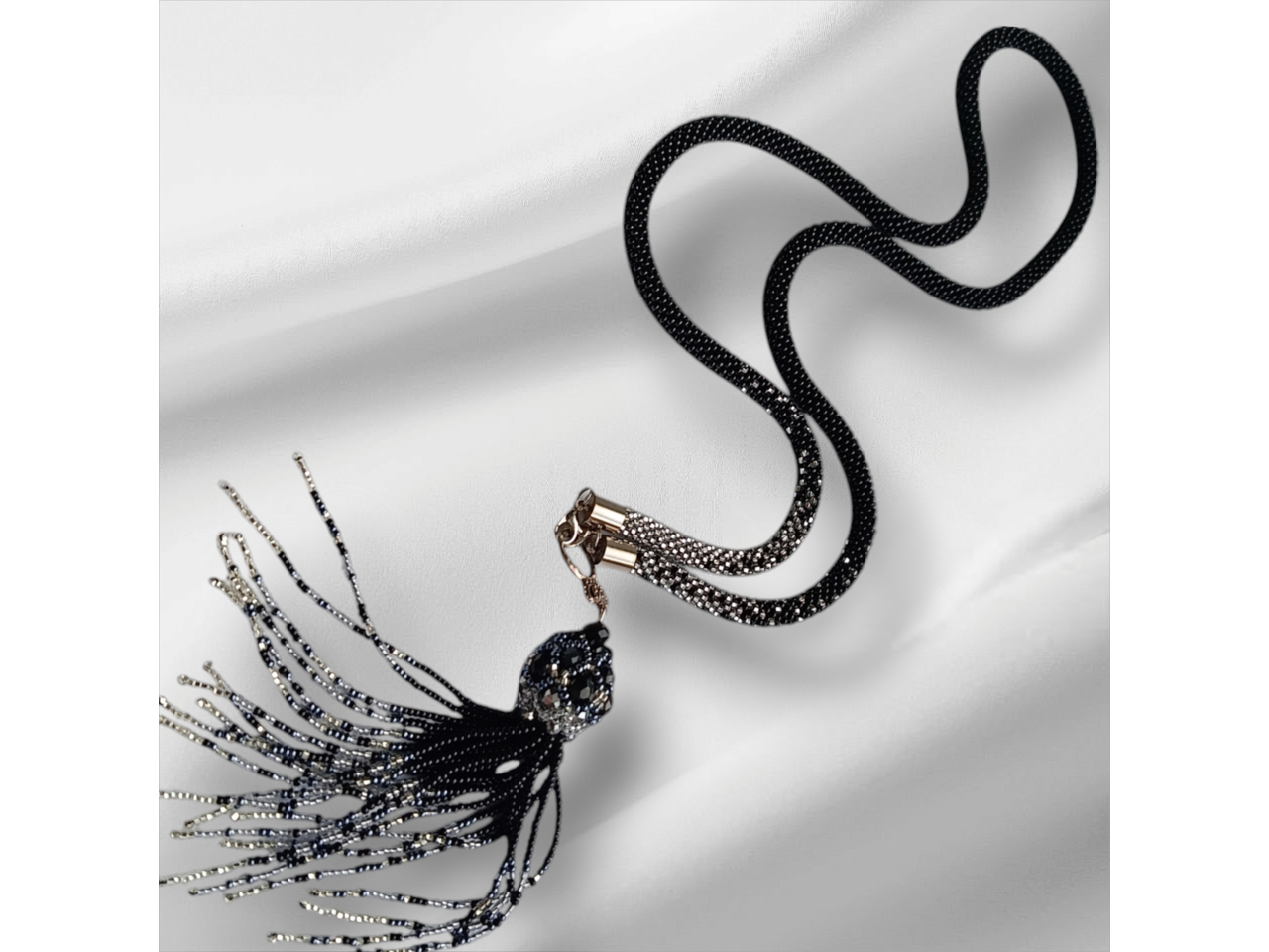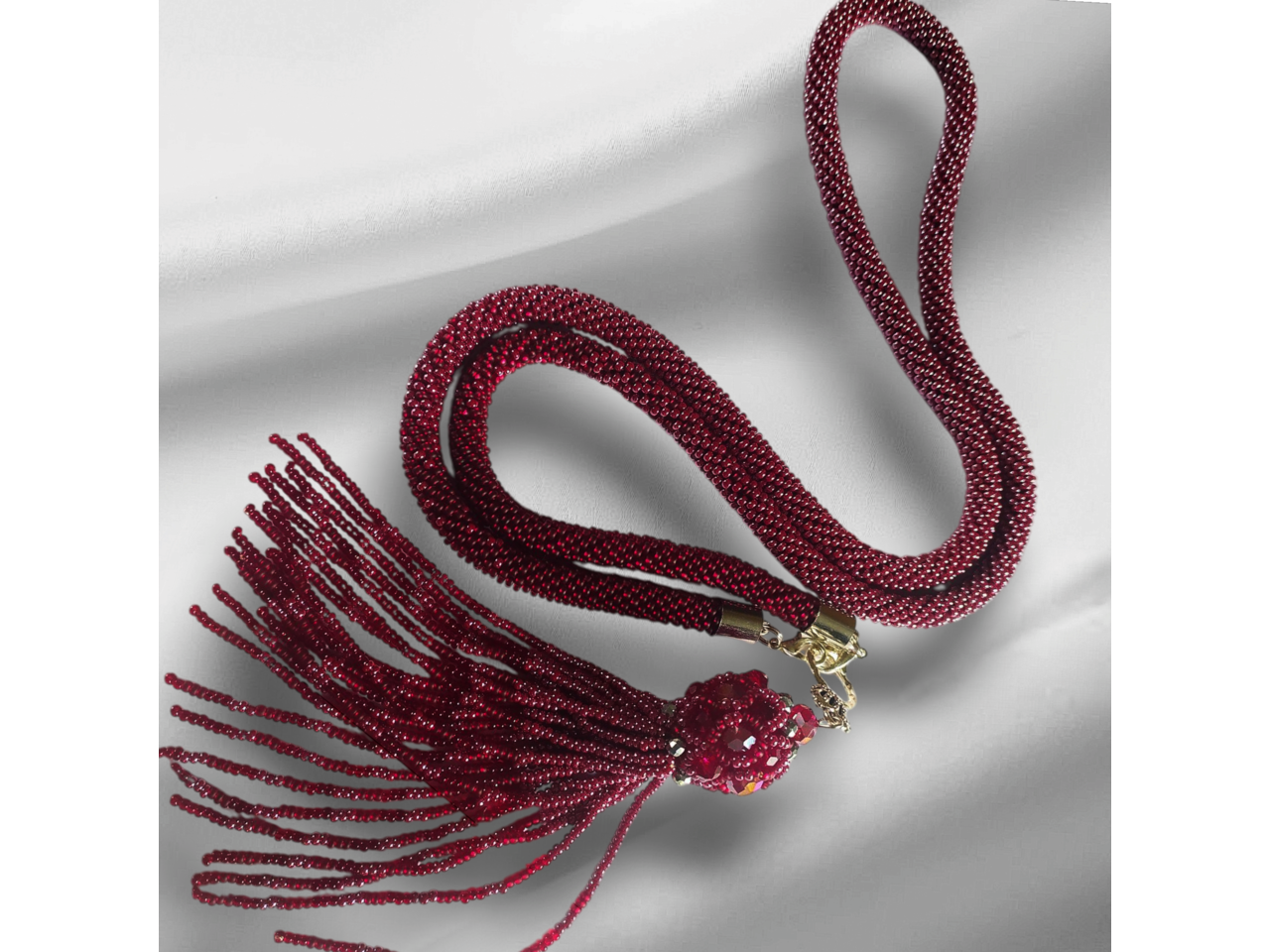 Довге намисто зв′язане із чеського бісеру та намистин. Кисть з′ємна. Довжина намиста з підвіскою 57-59 см. До намиста можливе замовлення браслету. Більше інформації в повідомленнях.