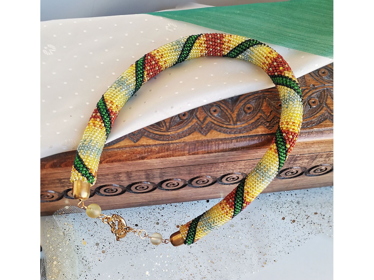 Прикраса із бісеру кольє-джгут "Чарівний ліс"