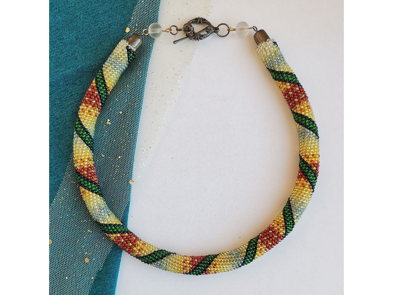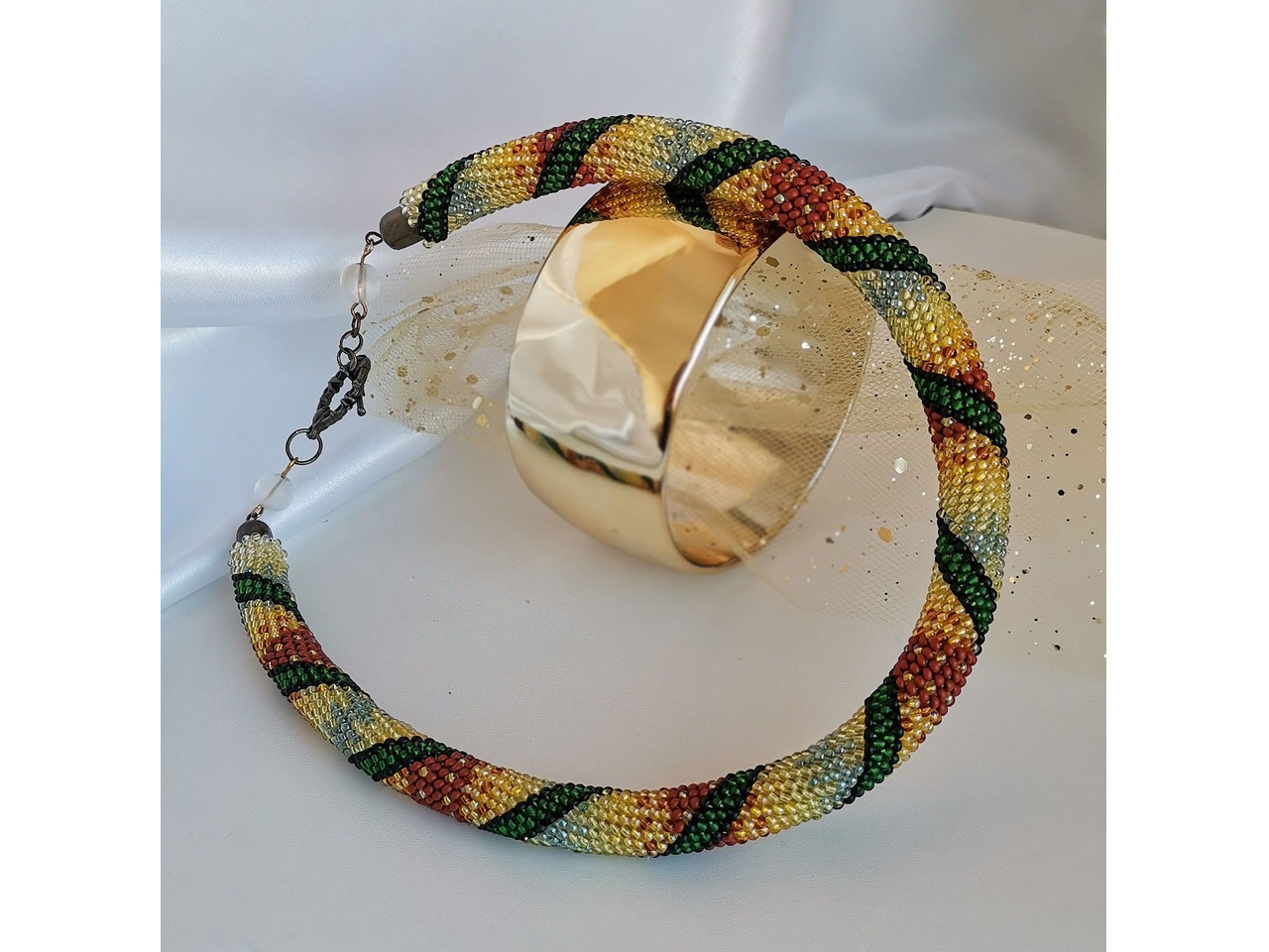 Стильний джгут, зв'язаний з чеського бісеру. Стримана і водночас приваблива прикраса, яка створена для тих, в чиїх жестах - м'якість, а в очах - відблиск внутрішнього полум'я. Це не просто аксесуар, це настрій - тонкий, вишуканий, як шовковий шепіт у напівтемряві. Будь у тренді, сяй елегантністю! До...