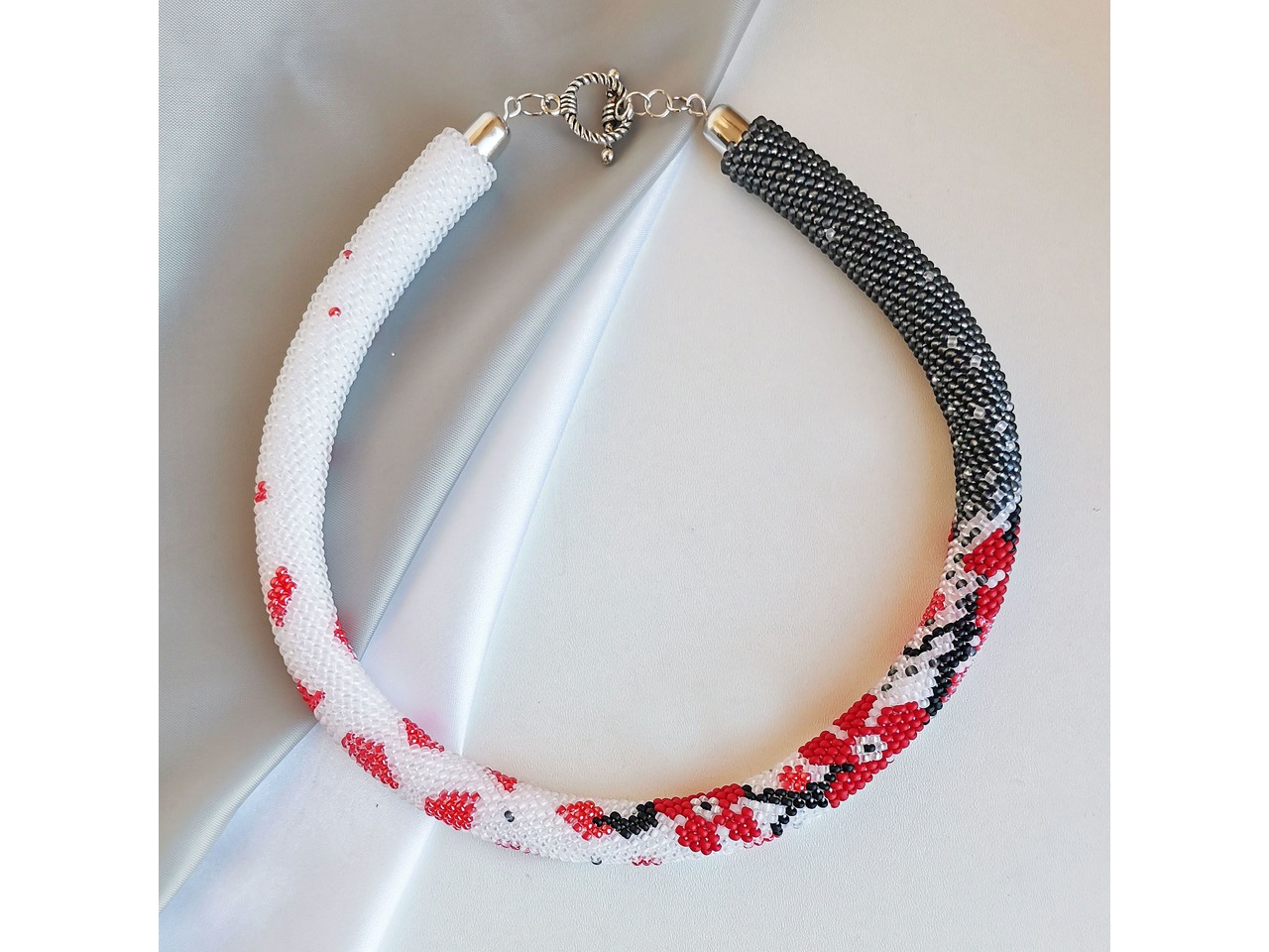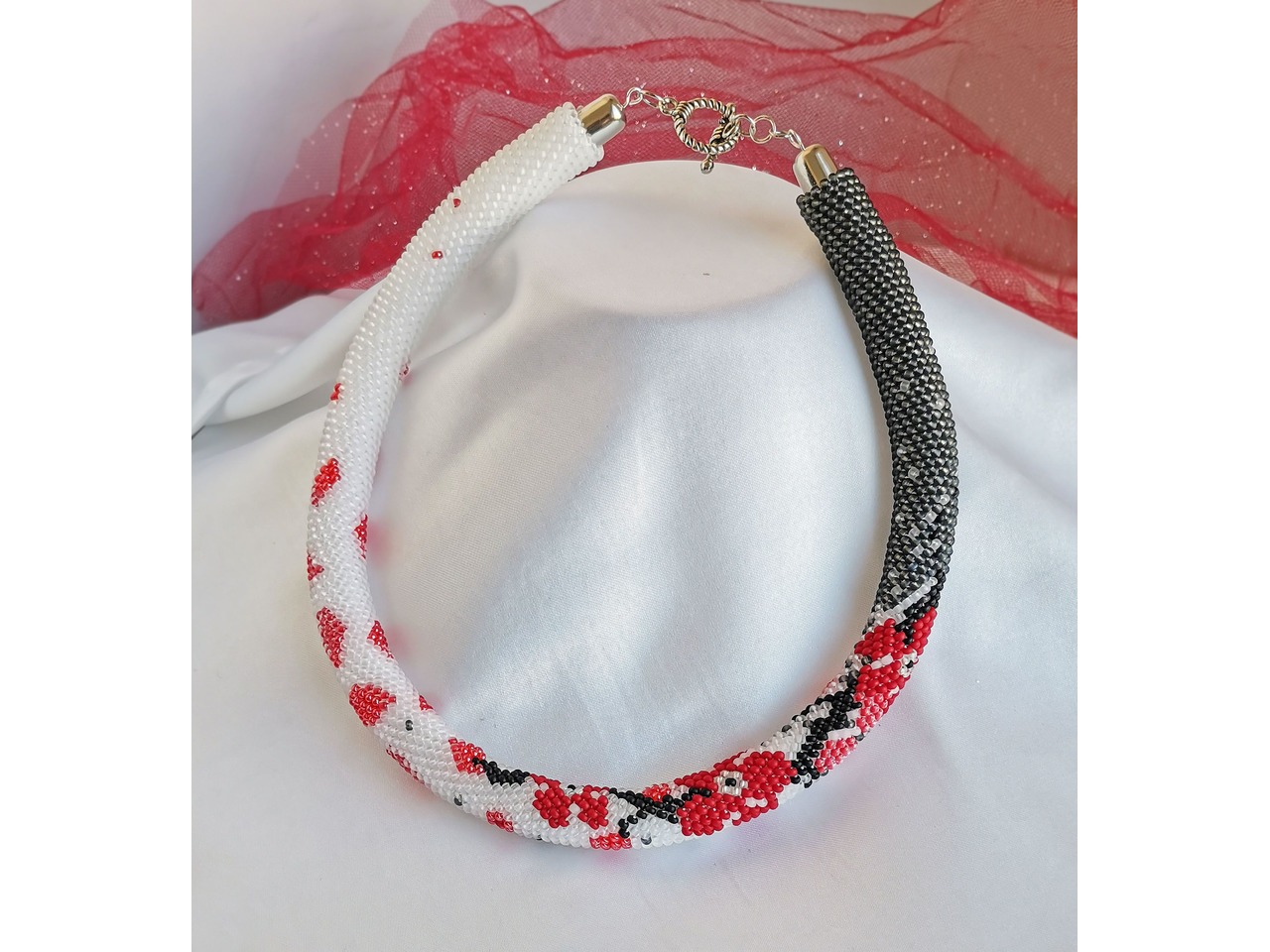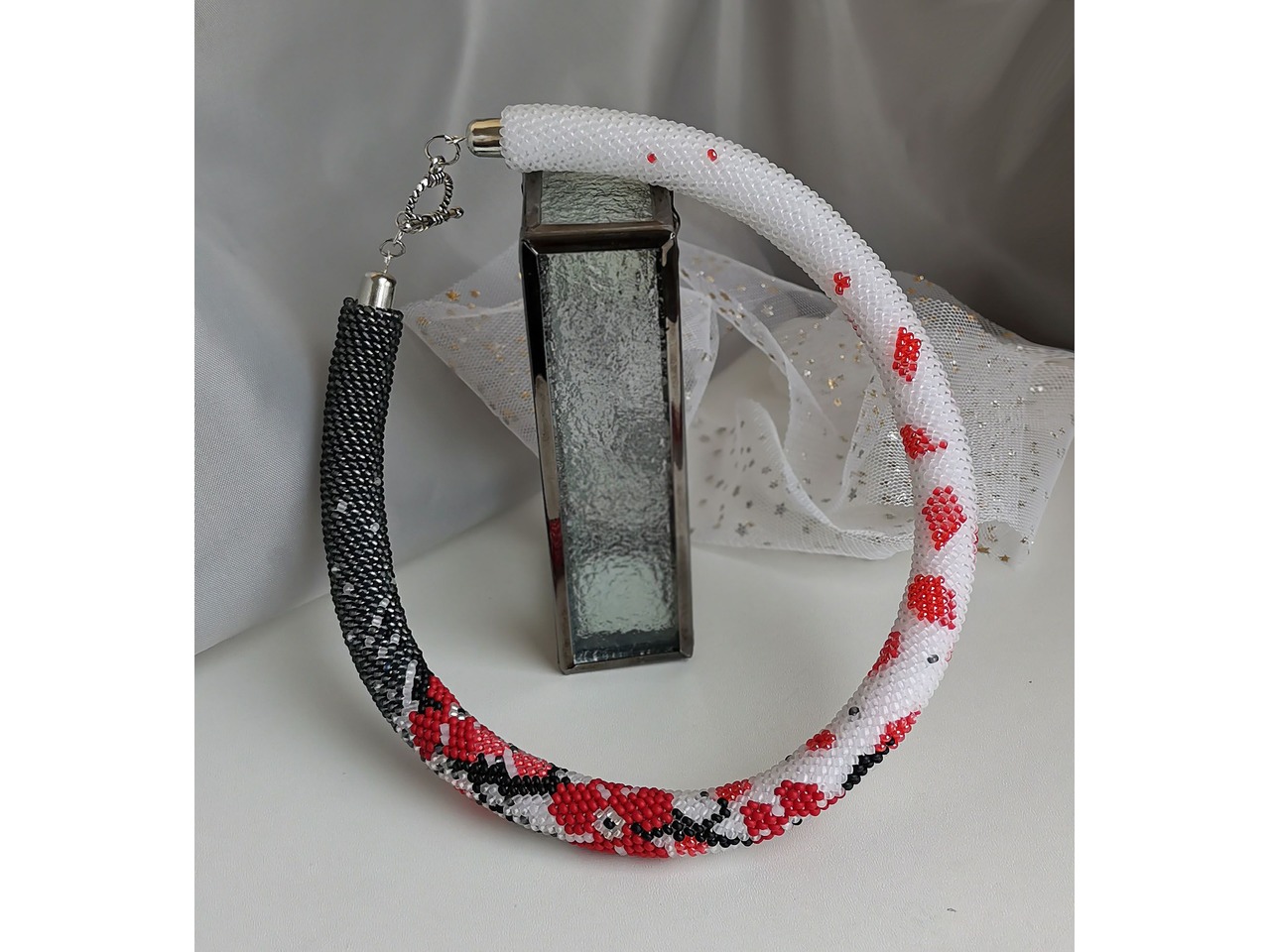 Прикраса із бісеру кольє-джгут "Червоні пелюстки"