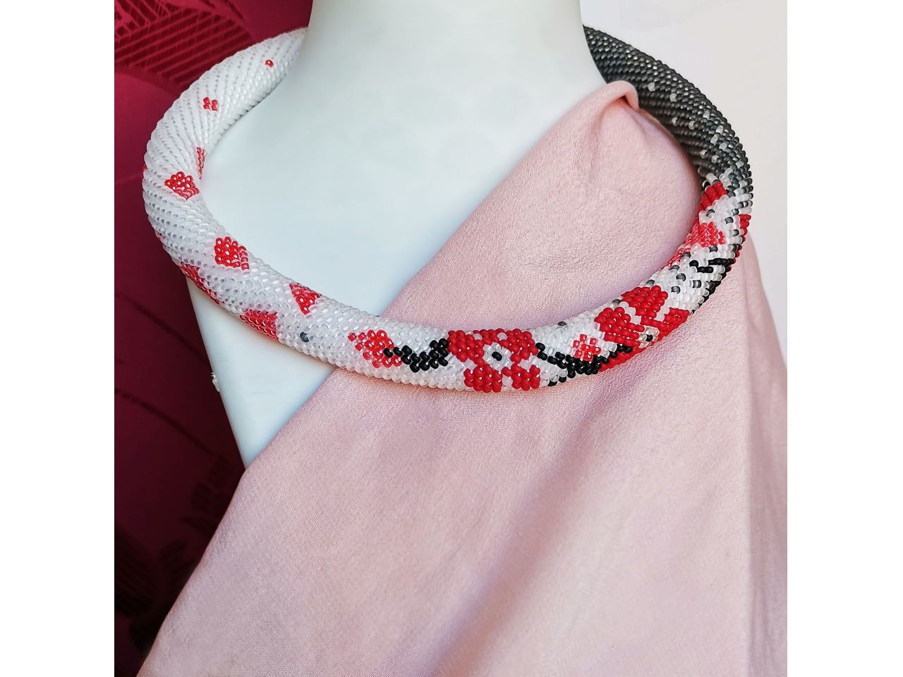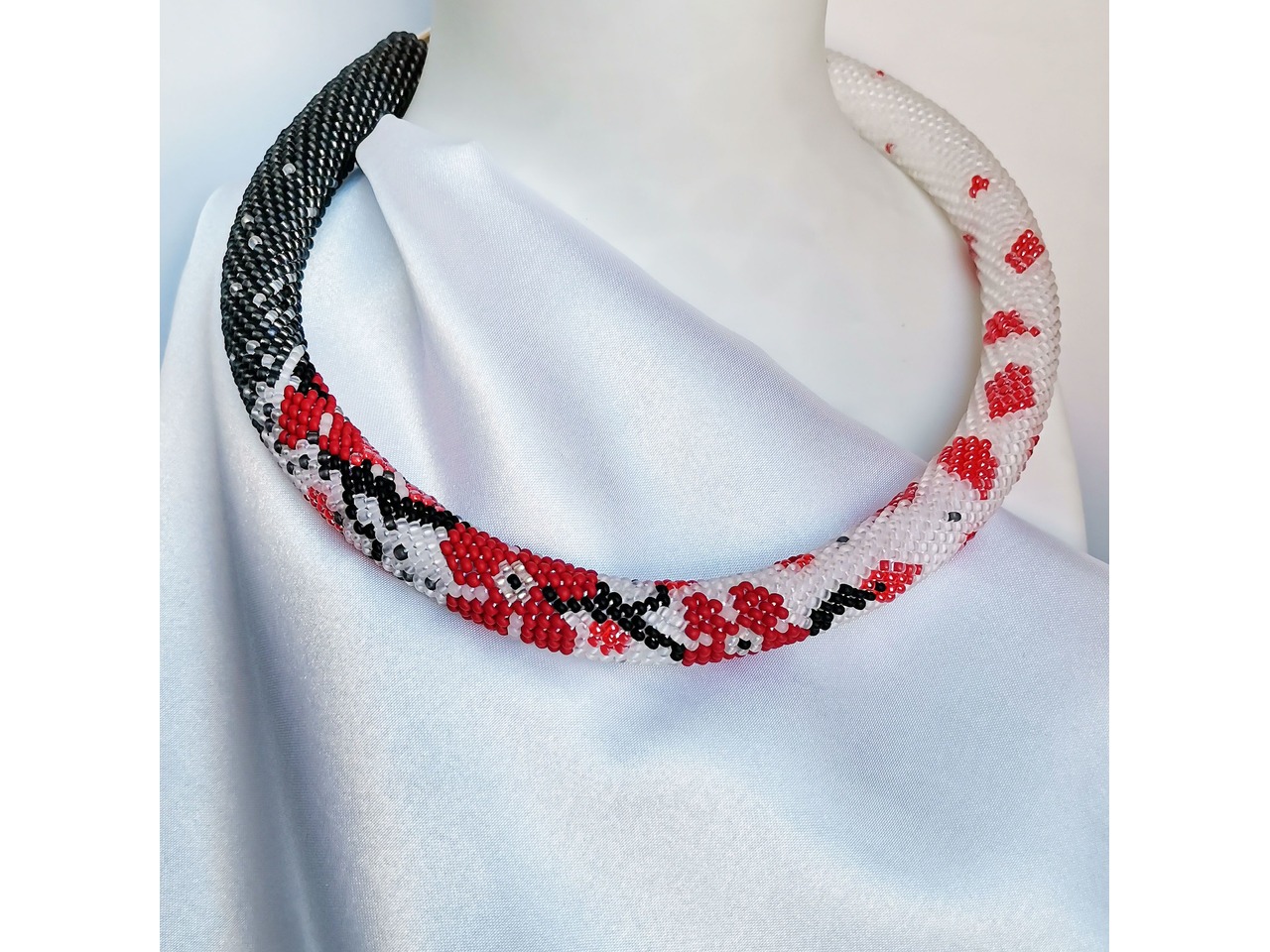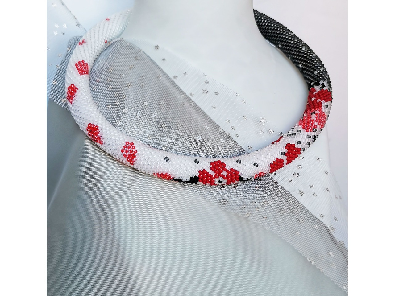 Прикраса із бісеру кольє-джгут "Червоні пелюстки"