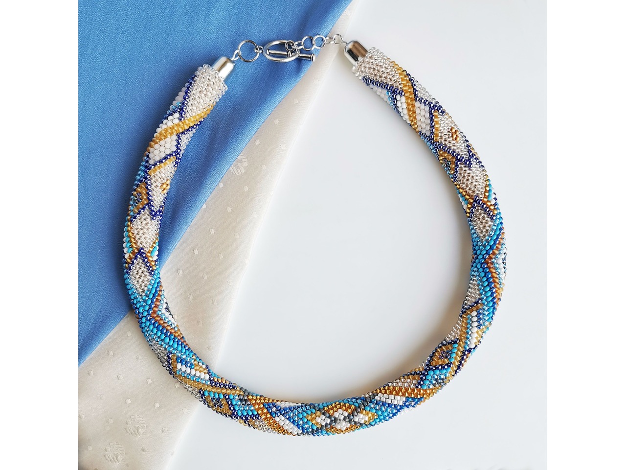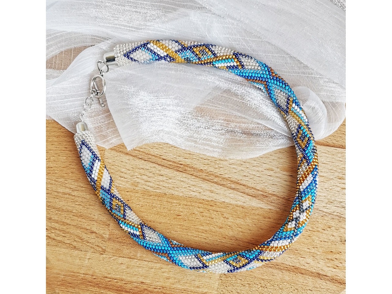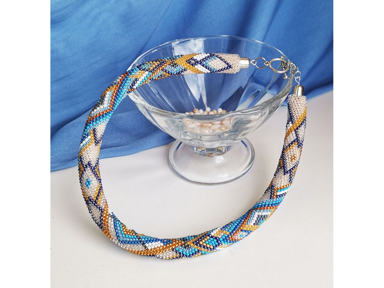 Прикраса із бісеру кольє-джгут "Лазурне сяйво"