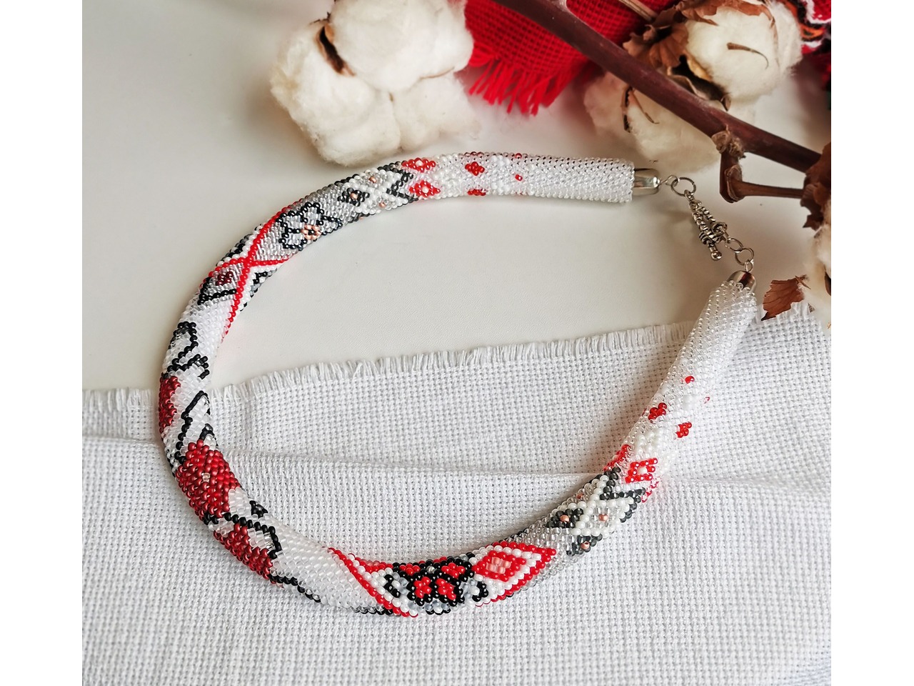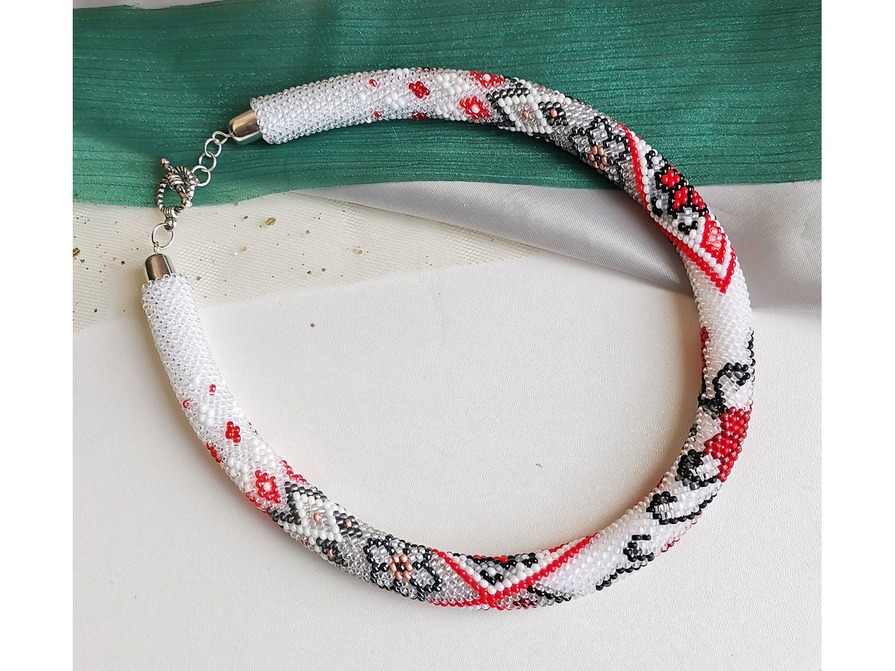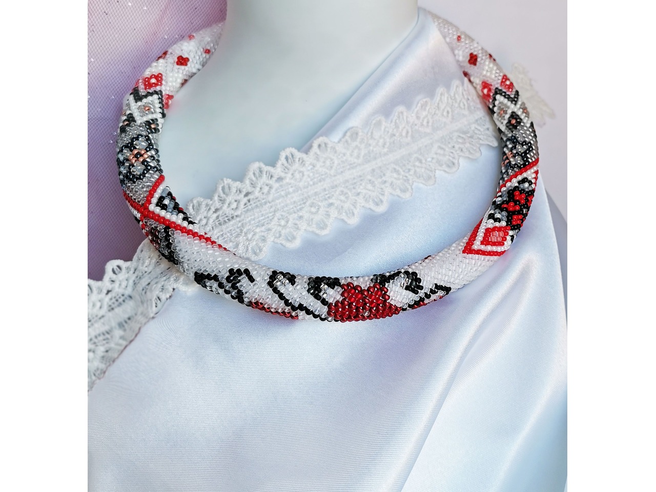 Джгут, зв'язаний з чеського бісеру в стилі "вишиванка". Естетика традиційного візерунка, перенесена в сучасну прикрасу, підкреслить індивідуальність, стане виразною деталлю будь-якого образу і подарує відчуття гармонії та впевненості. Це не просто модний аксесуар - це символ кохання, жіночої сили і внутрішнього світла, тихий оберіг, який зберігає тепло і притягує удачу. Традиція століть, талісман сьогодні! Довжина ок 43 см. Можливо подовжити ланцюжком Більше моїх робіт в інст:tatianalevchenko165