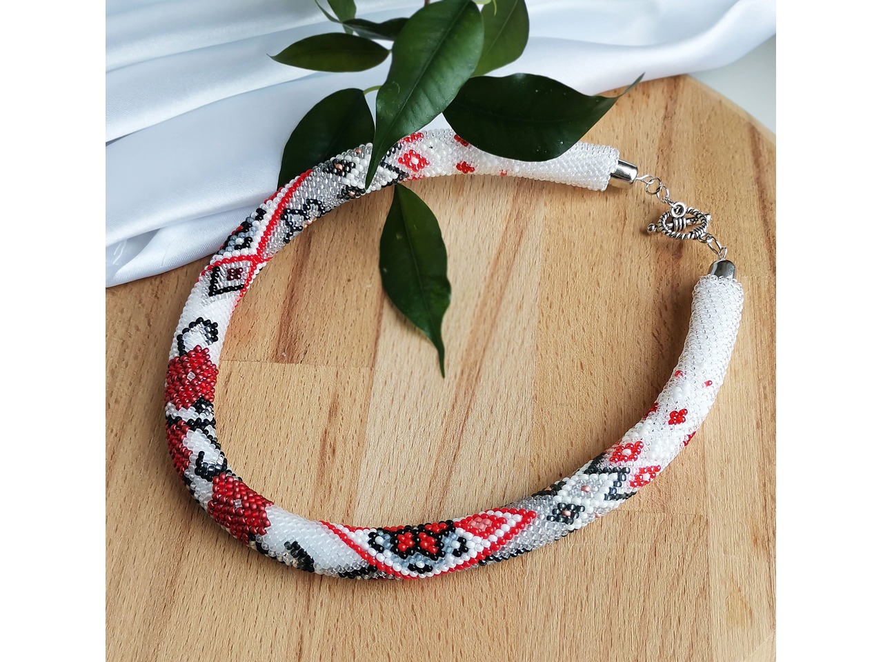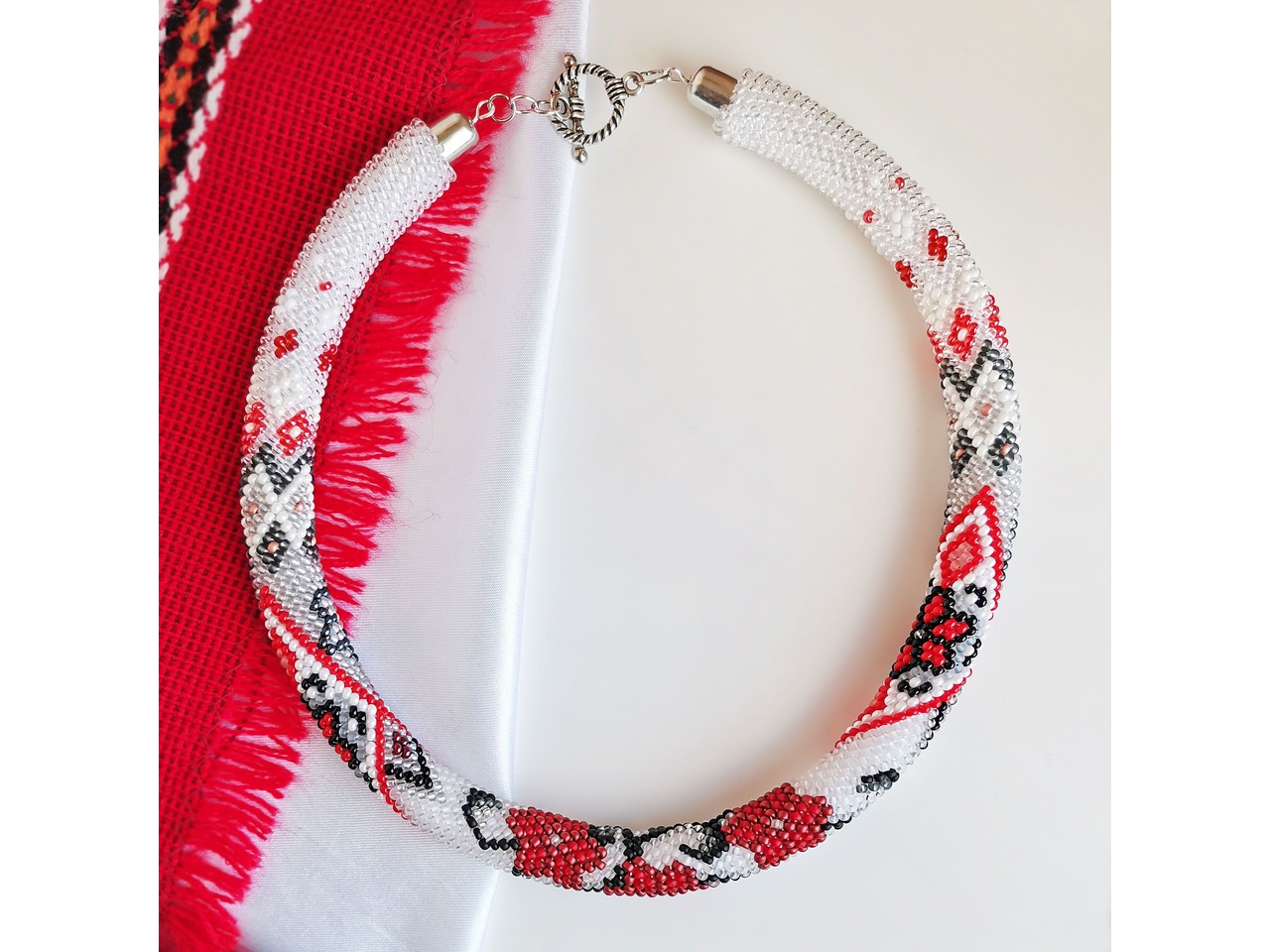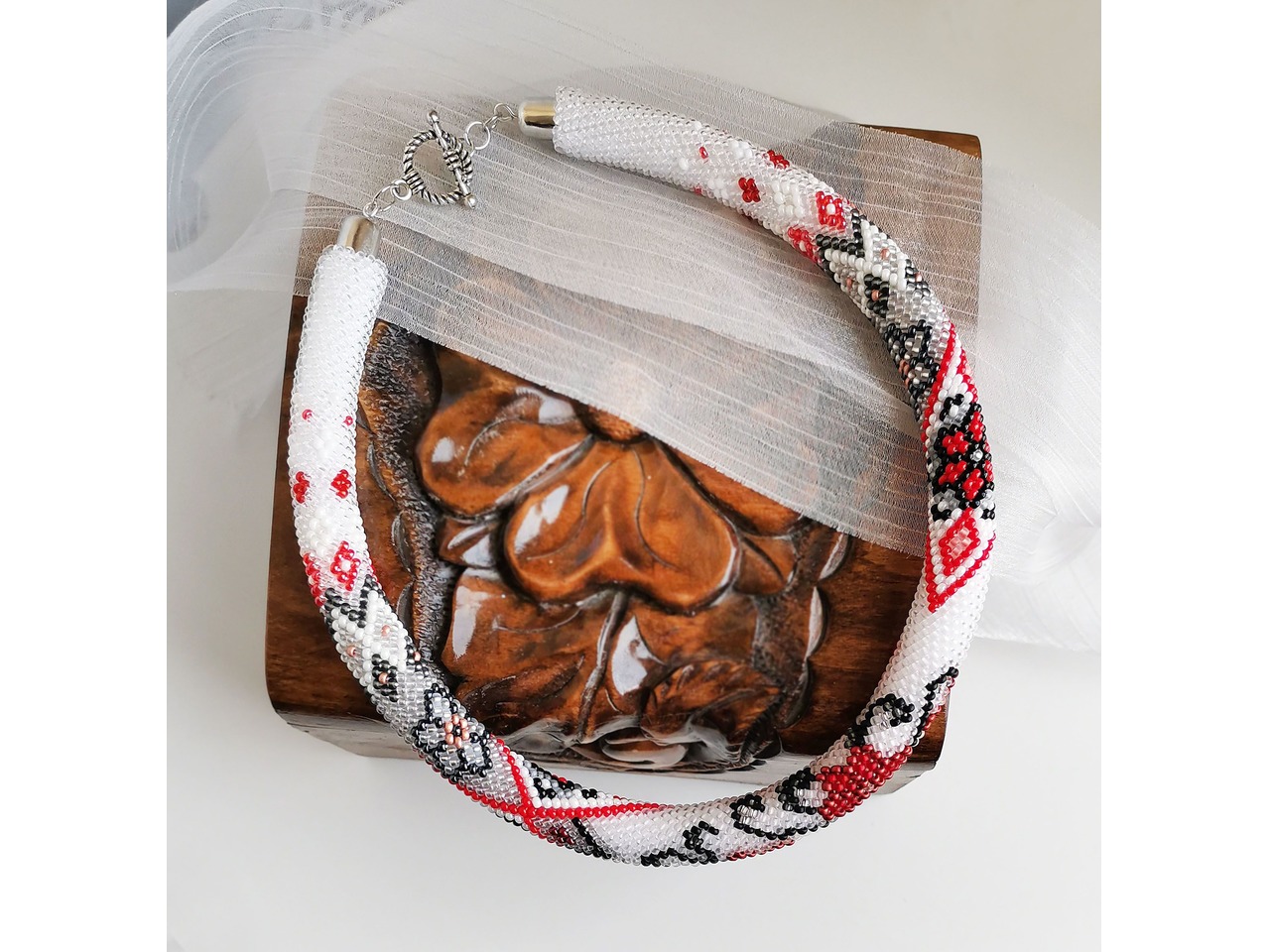 Джгут, зв'язаний з чеського бісеру в стилі "вишиванка". Естетика традиційного візерунка, перенесена в сучасну прикрасу, підкреслить індивідуальність, стане виразною деталлю будь-якого образу і подарує відчуття гармонії та впевненості. Це не просто модний аксесуар - це символ кохання, жіночої сили і внутрішнього світла, тихий оберіг, який зберігає тепло і притягує удачу. Традиція століть, талісман сьогодні! Довжина ок 43 см. Можливо подовжити ланцюжком Більше моїх робіт в інст:tatianalevchenko165