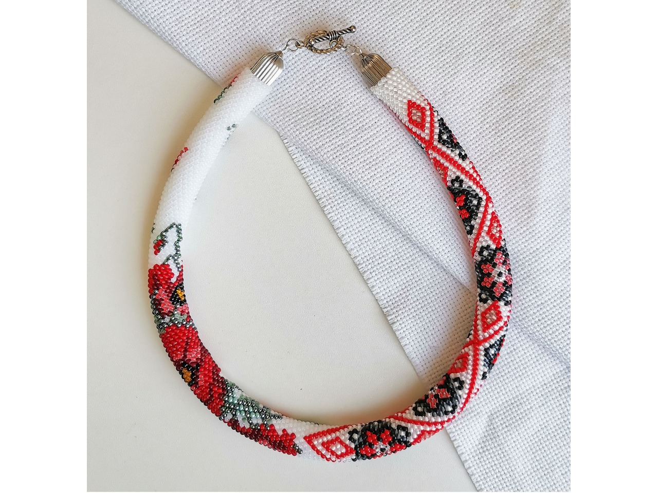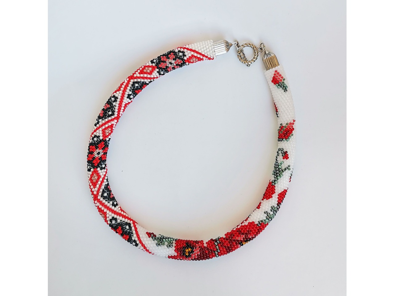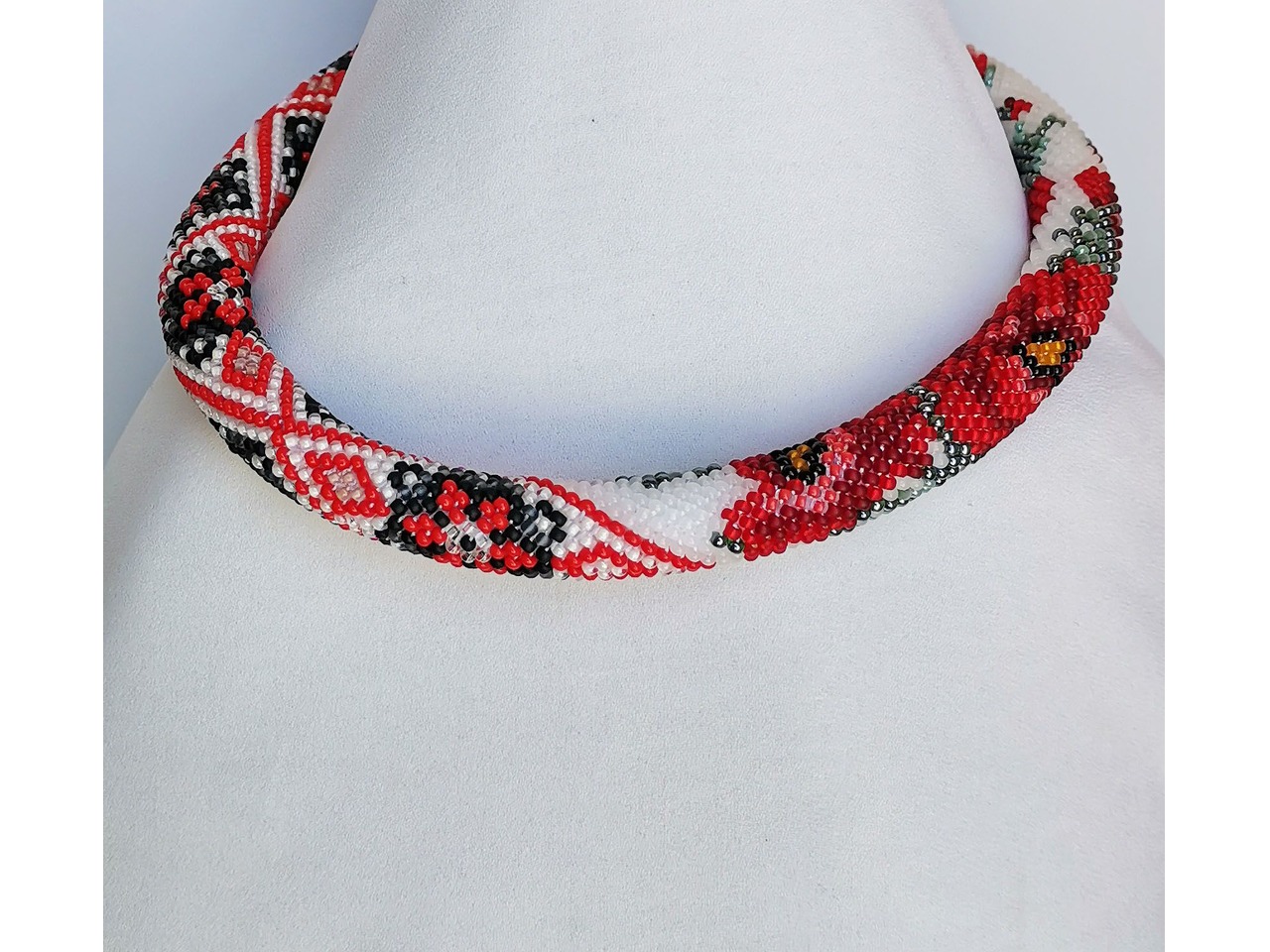 Прикраса із бісеру кольє-джгут "Маков цвіт"