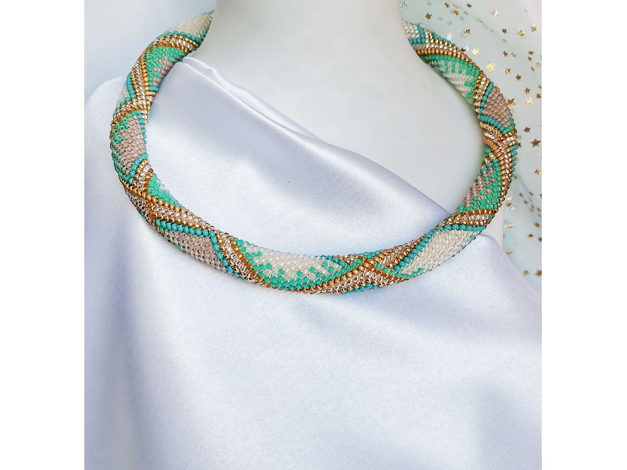 Прикраса із бісеру кольє-джгут "Місячний вітер"