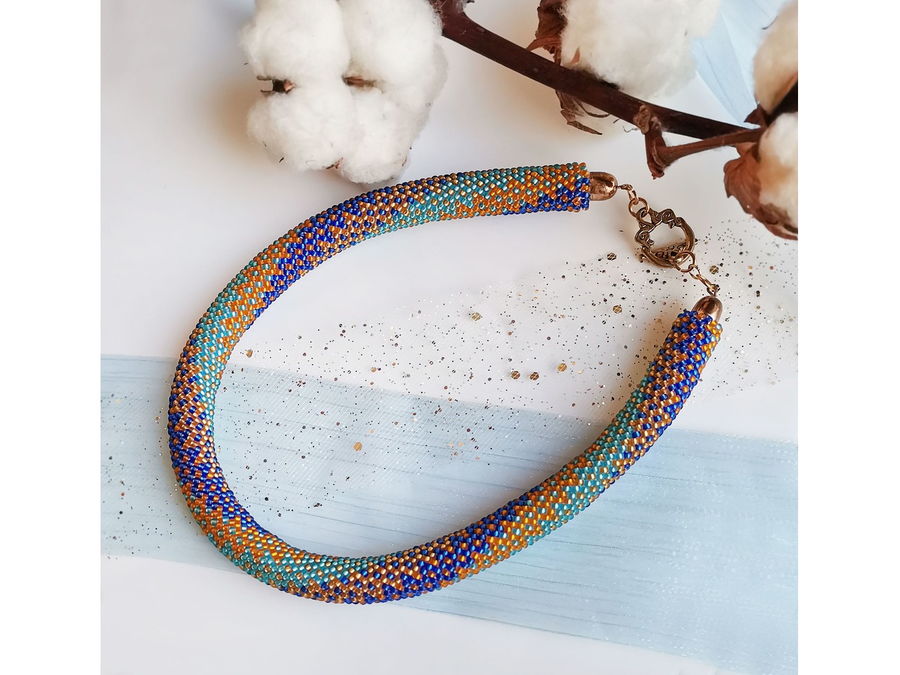 Унікальний джгут з чеського бісеру в ніжному забарвленні. Оригінальний стиль, натхненний національними фарбами делікатно підкреслить вашу індивідуальність, додасть образу шляхетності та тепла, стане акцентом як у повсякденному вбранні, так і в особливі моменти. Сучасність і традиції у кожній деталі. Довжина із застібкою ок.42см., можливо продовжити ланцюжком. Більше моїх робіт в інст:tatianalevchenko165