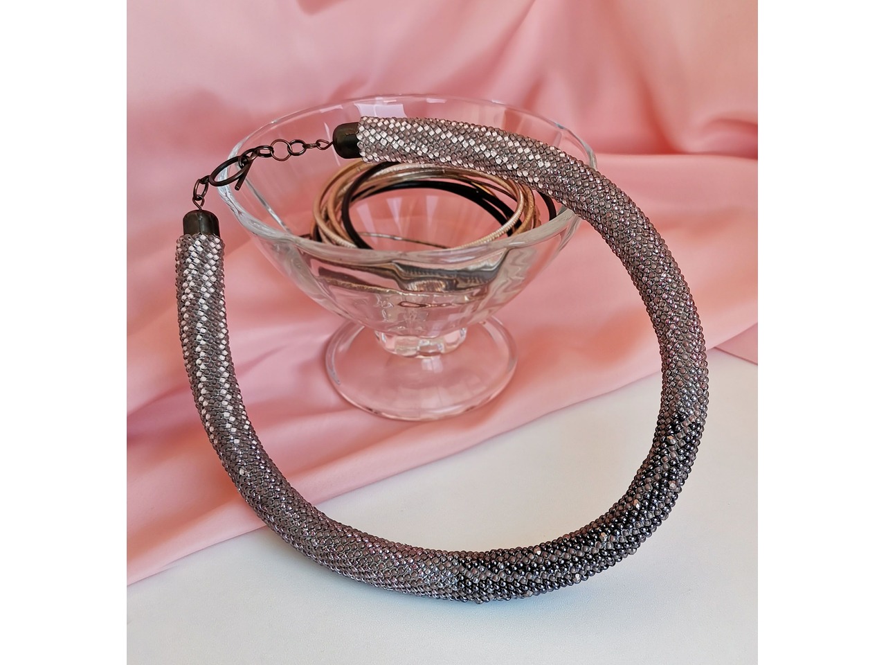 Прикраса із бісеру кольє-джгут "Ніжність"