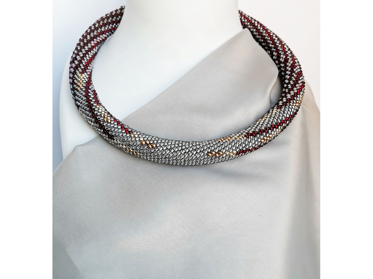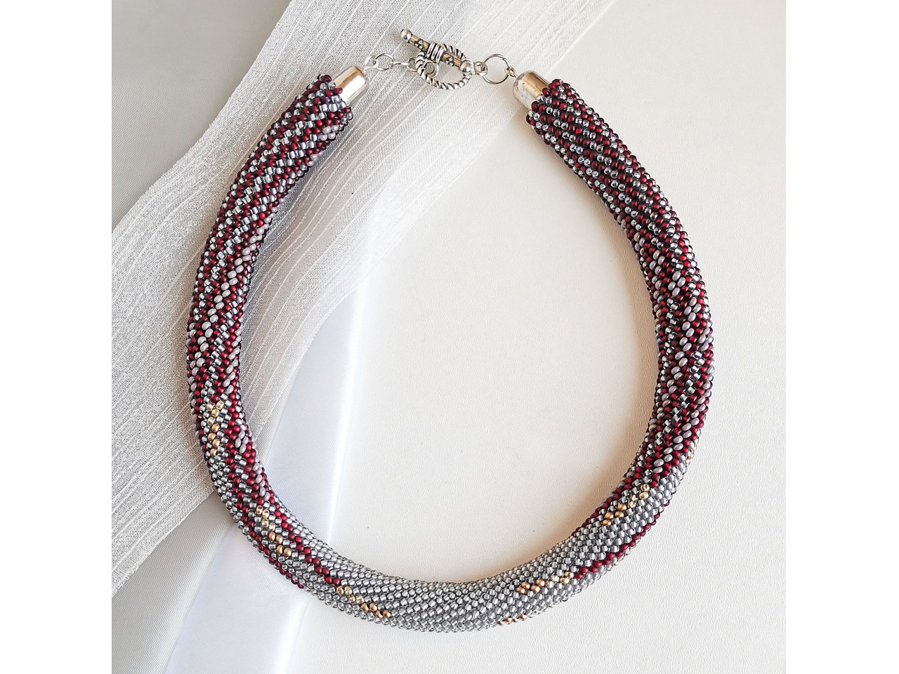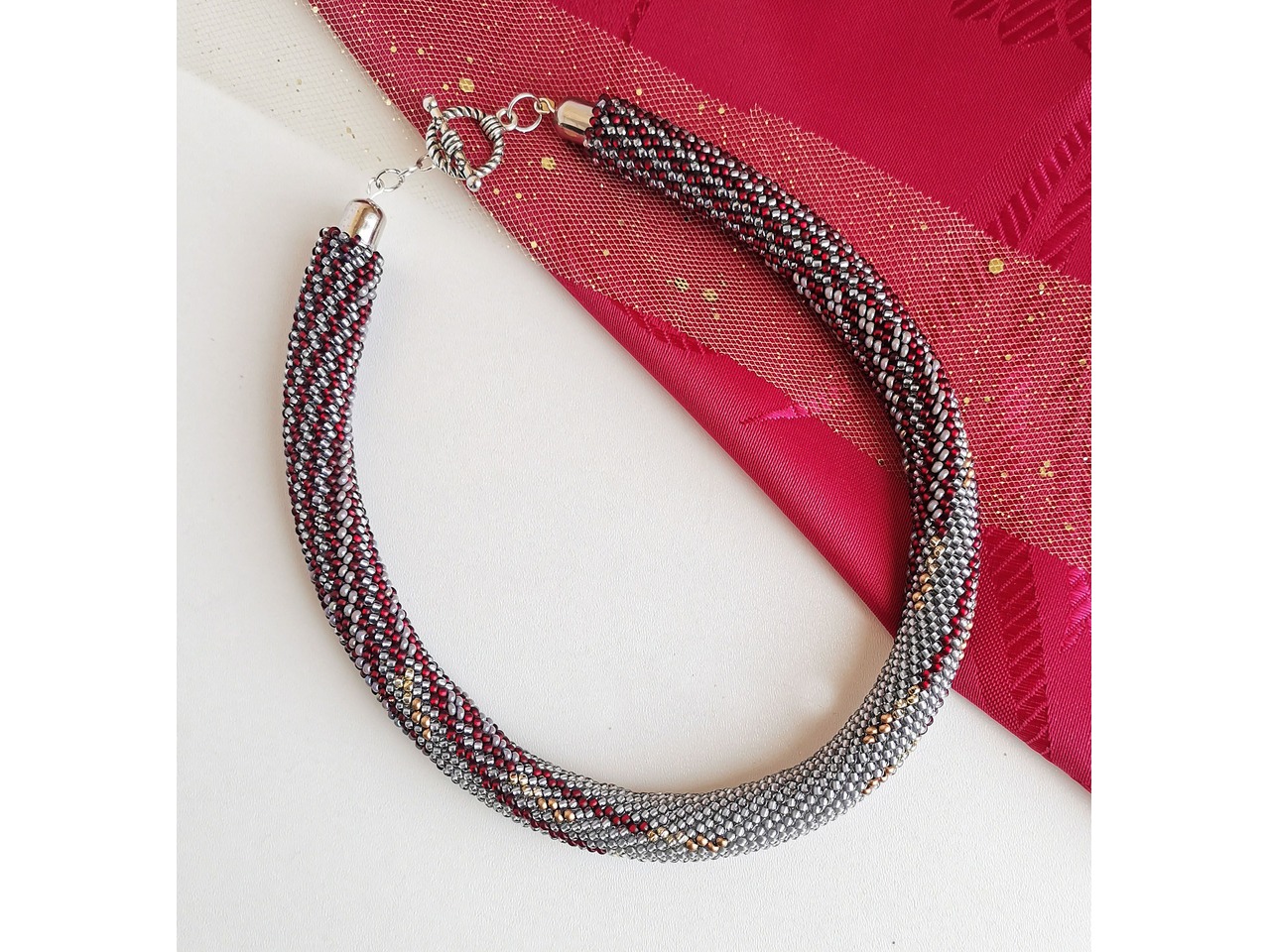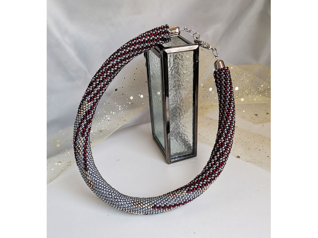 Стильний і вишуканий джгут, зв'язаний з чеського бісеру. Ця прикраса для тих, хто вибирає не просто аксесуар, а настрій, для тих, хто цінує делікатну розкіш і хоче виділитися тонко, красиво, по-справжньому. Порадуйте себе ніжною прикрасою, яка підкреслить Вашу жіночність і додасть шарму будь-якому вбранню. Довжина з застібкою близько 39 см, можливо продовжити ланцюжком. Більше моїх робіт в інст:tatianalevchenko165