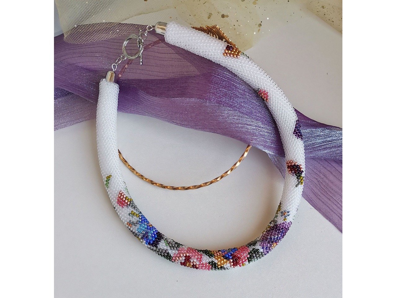 Прикраса із бісеру кольє-джгут "Польовий букет"