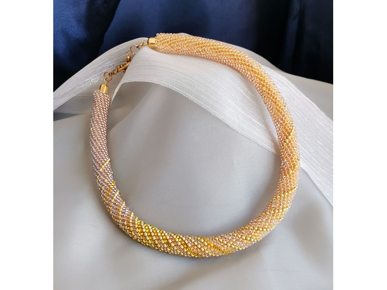 Розкішний джгут, зв'язаний з чеського бісеру-намисто, в якому світло зустрічається з рухом життя. Прикраса не просто доповнить Ваш образ, а стане його центром-немов мить долі, наповнена світлом і сенсом. Для тих, хто цінує вишуканість і витонченість! Довжина з застібкою ок 40 см, можливо продовжити ланцюжком. Більше моїх робіт в інст:tatianalevchenko165