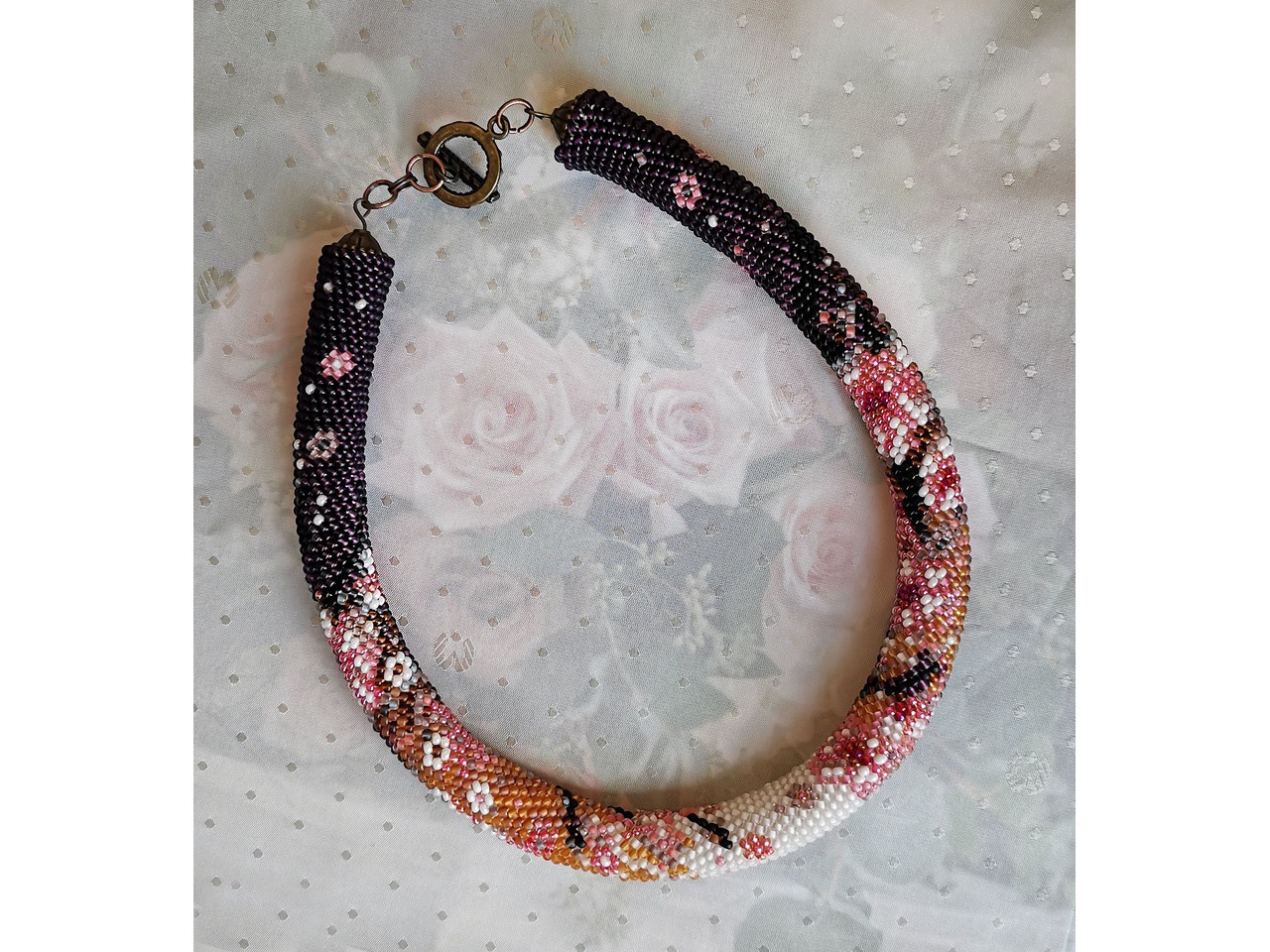 Джгут-кольє, зв'язаний із чеського бісеру. Ніжний візерунок у стилі японської акварелі наповнює весняною легкістю та жіночністю. Це не просто аксесуар - це акцент, це настрій, це ти. І трохи східної магії... Підкресліть свою індивідуальність з цією прикрасою - класика, натхненна природою. Довжина із застібкою ок.40см., можливо продовжити ланцюжком. Більше моїх робіт в інст:tatianalevchenko165
