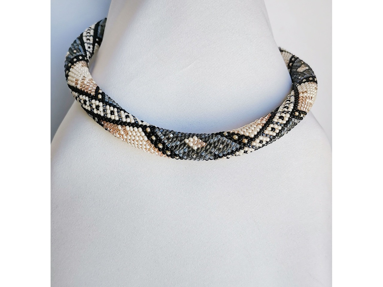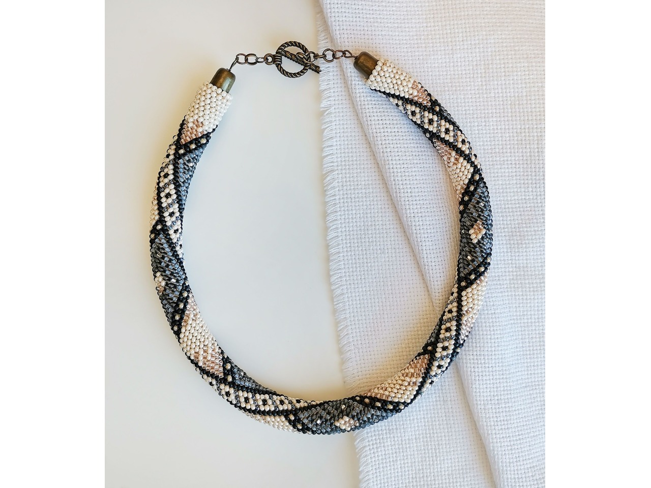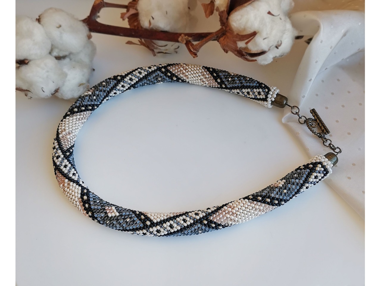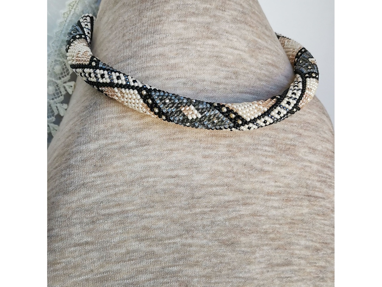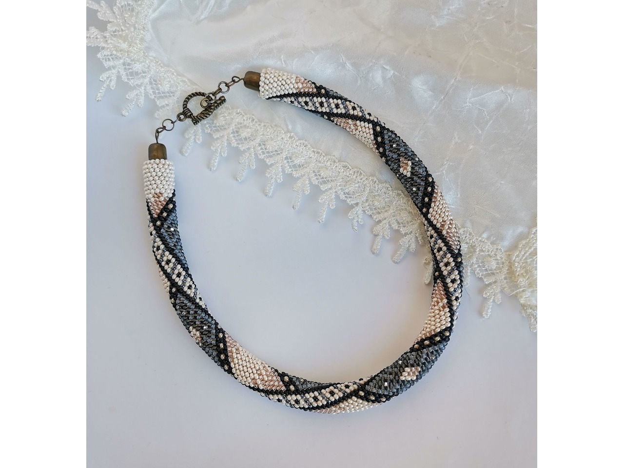 Прикраса із бісеру кольє-джгут "Срібне мереживо"