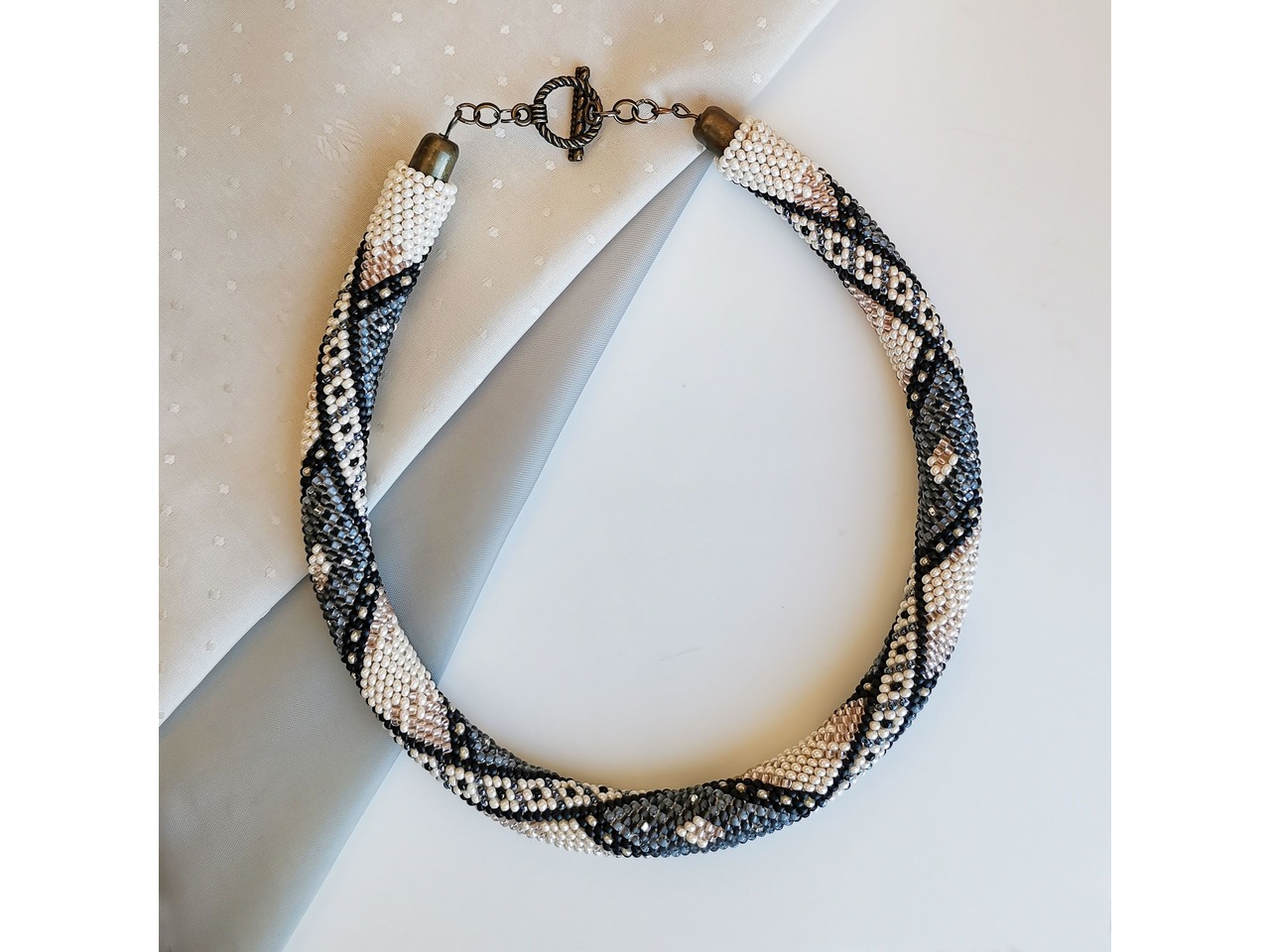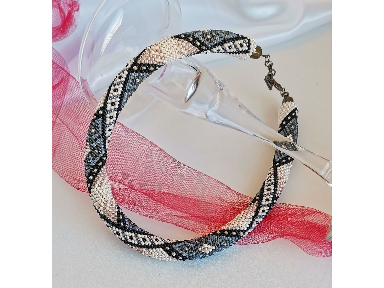 Стильний джгут, зв'язаний з чеського бісеру. Стримана і водночас приваблива прикраса, яка створена для тих, в чиїх жестах - м'якість, а в очах - відблиск внутрішнього полум'я. Це не просто аксесуар, це настрій - тонкий, вишуканий, як шовковий шепіт у напівтемряві. Будь у тренді, сяй елегантністю! До...