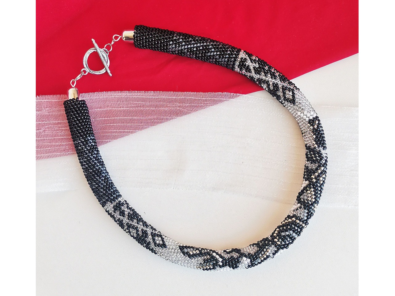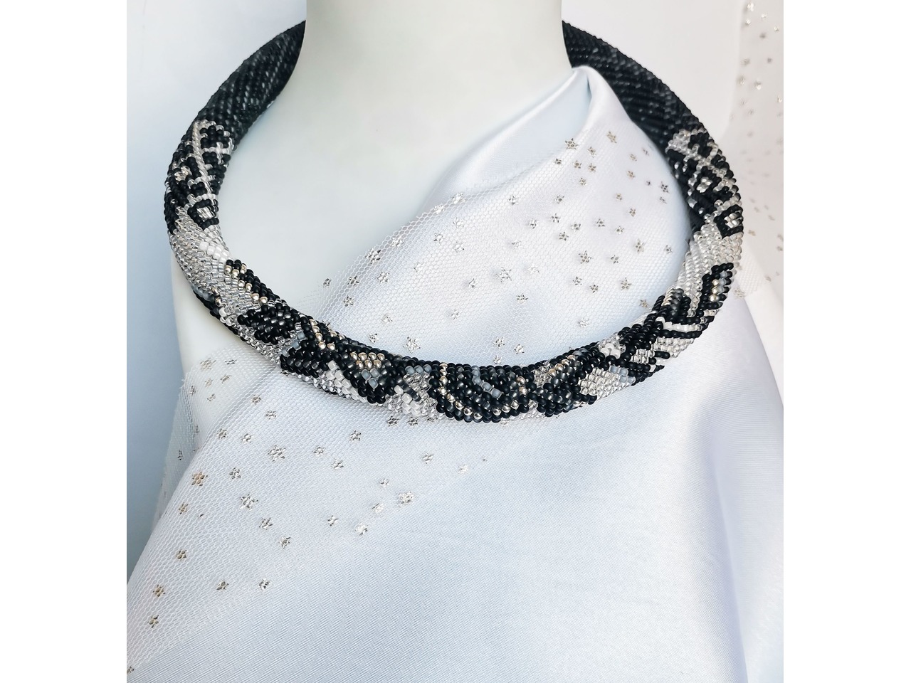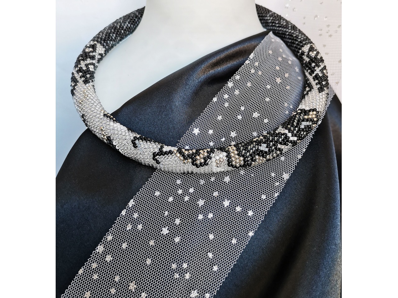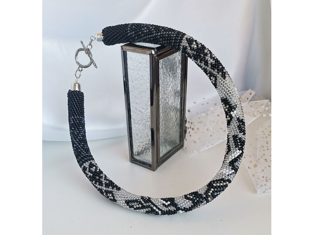 Стильний джгут, з'язаний з чеського бісеру. Ця вишукана прикраса створює образ стриманої розкоші і внутрішньої сили. Ідеально підкреслює елегантність, додаючи загадковість і благородний блиск. Для тих, хто цінує деталі, любить тишу з характером і вибирає аксесуар з настроєм. Довжина з застібкою близько 43 см, можна продовжити ланцюжком. Більше моїх робіт в інст:tatianalevchenko165
