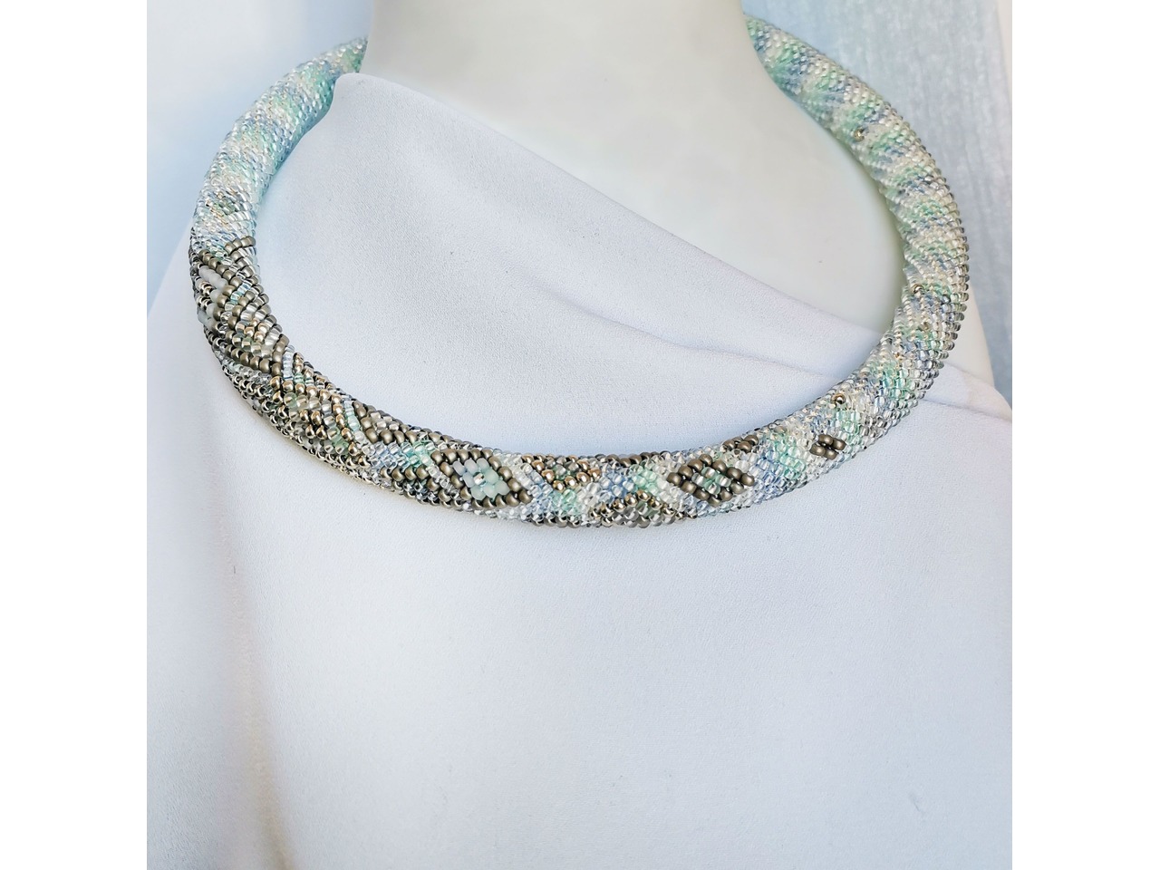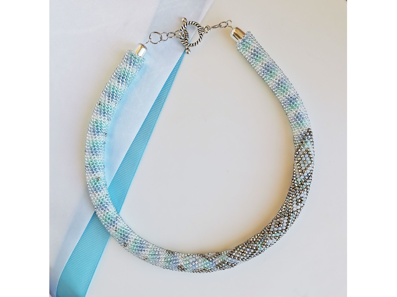 Оригінальний джгут-кольє з чеського бісеру. У цій прикрасі оживає ніжність перламутру - немов ранковий туман, що розчиняється в перших променях сонця. Стримана розкіш аксесуару як дотик до тиші, в якій народжується стиль. Носити його - значить обирати індивідуальність і красу, яка говорить пошепки, але запам'ятовується назавжди. Довжина із застібкою прибл.41см., можливо подовжити ланцюжком Більше моїх робіт в інст:tatianalevchenko165