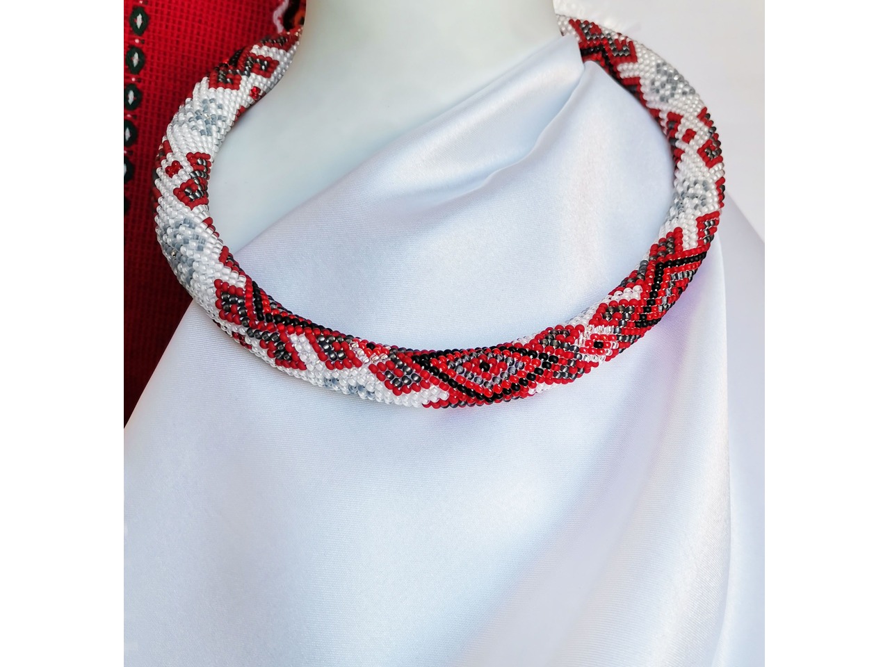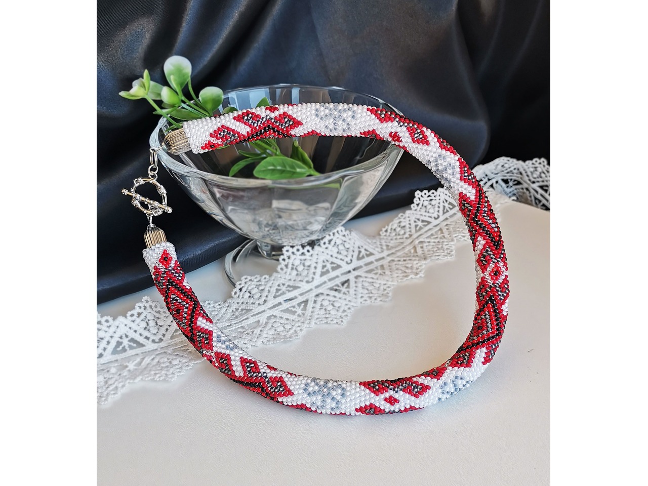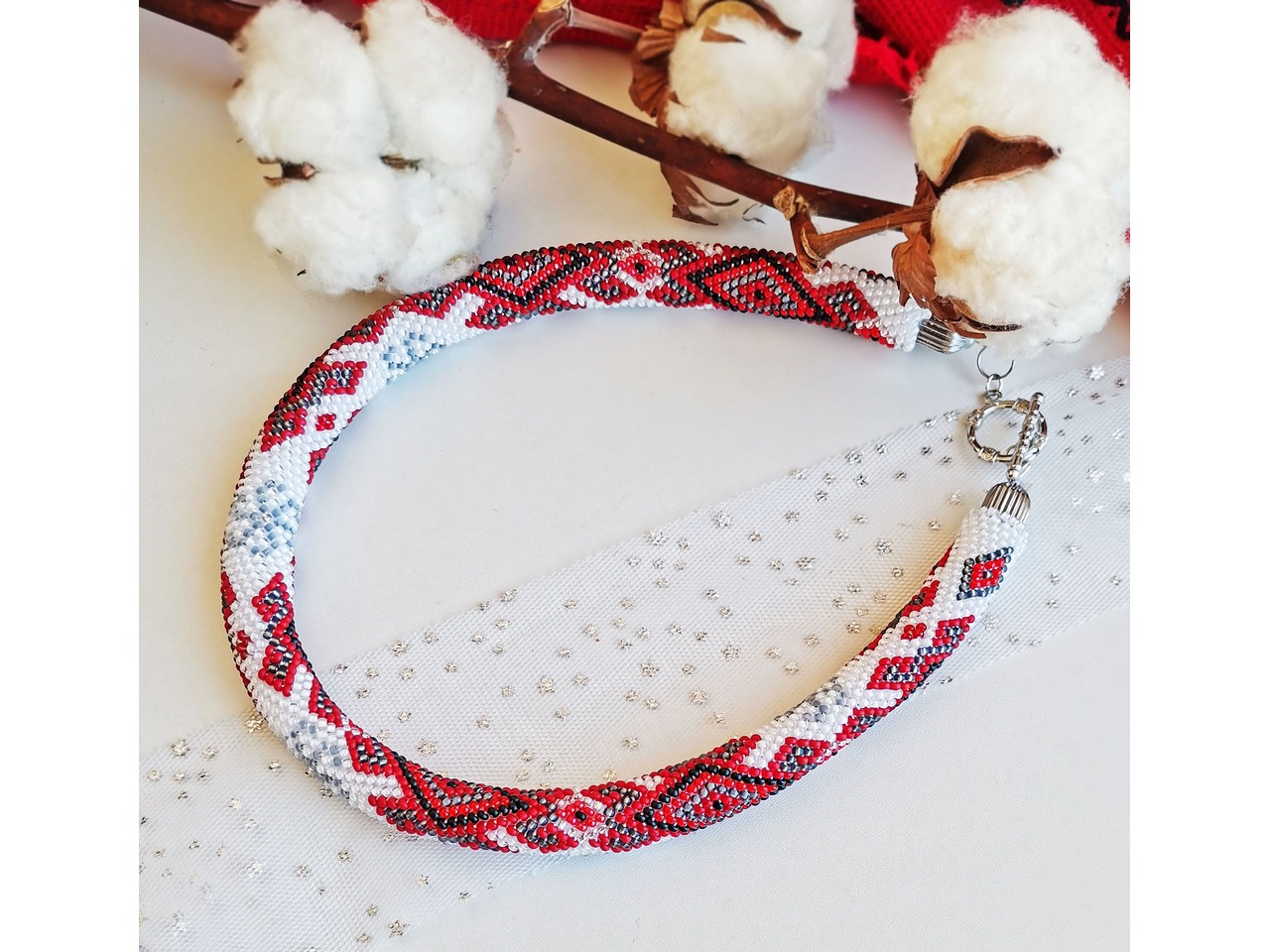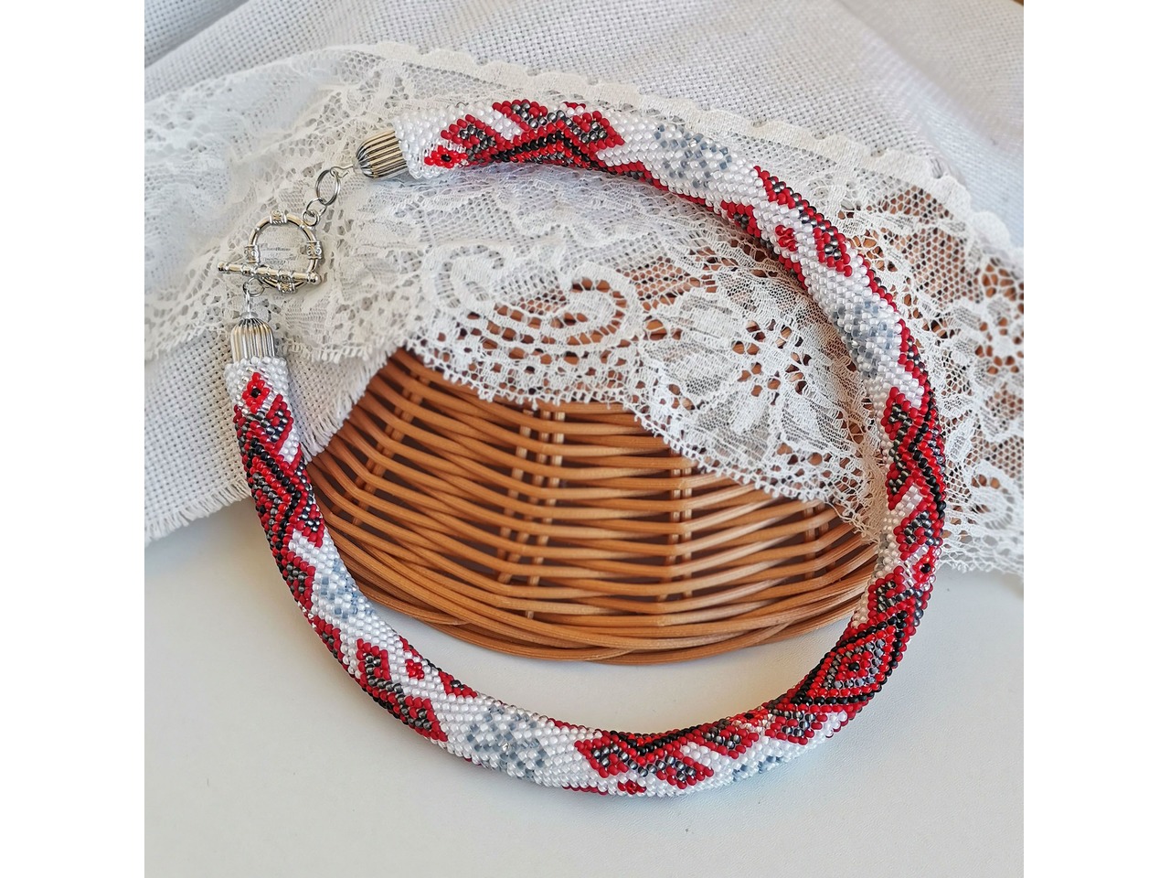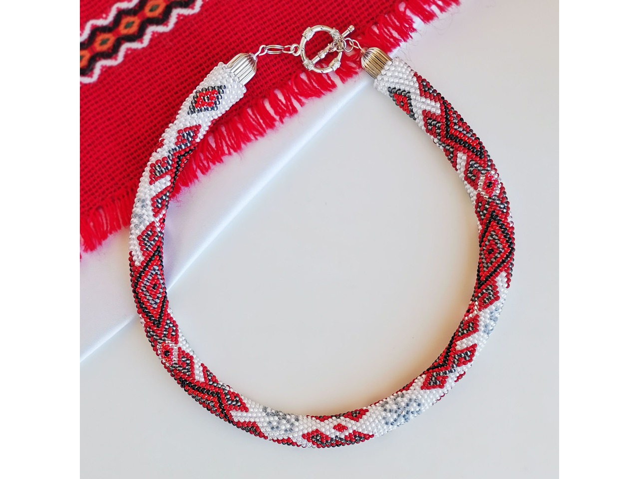 Джгут, зв'язаний із чеського бісеру в стилі "вишиванка". Привертайте захоплені погляди з яскравою прикрасою, натхненною традиційними мотивами. Чудовий аксесуар виконан з любов'ю та повагою до вікових традицій, але з ноткою сучасності, що робить його універсальними для будь-якого випадку. Зробіть собі або близьким оригінальний подарунок-оберіг. Довжина із застібкою ок.45см, можливо продовжити ланцюжком, Більше моїх робіт в інст:tatianalevchenko165