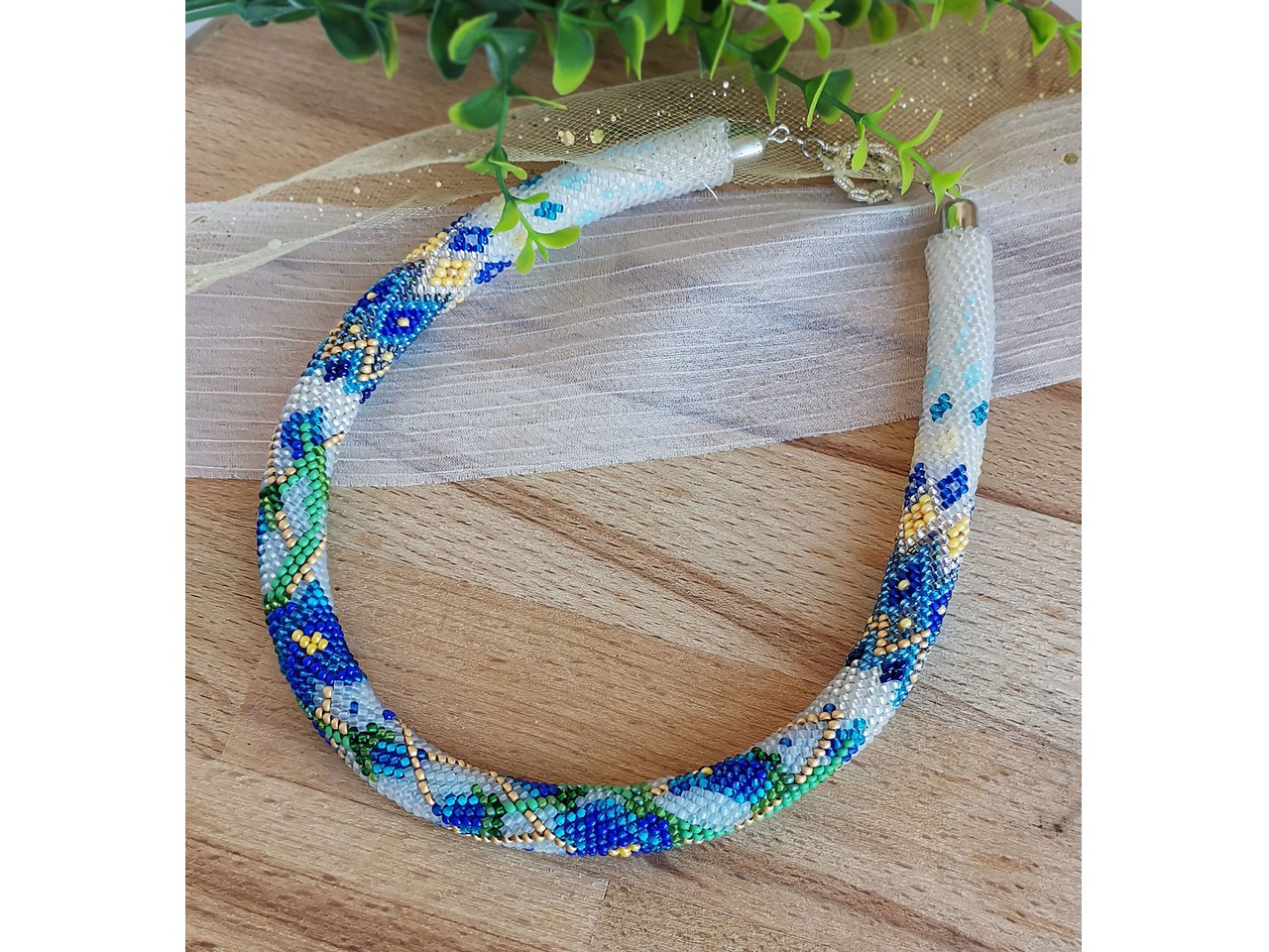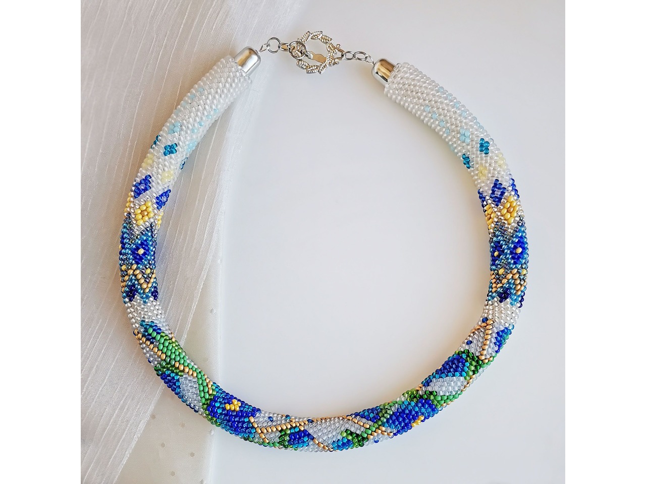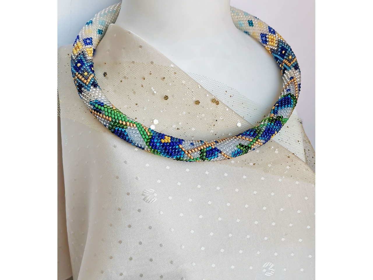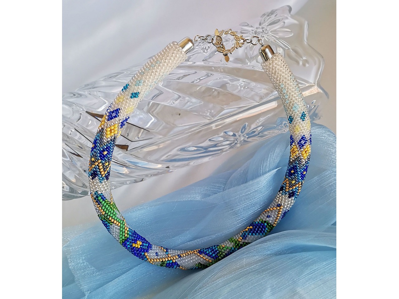 Прикраса із бісеру кольє-джгут "Волошковий танок"