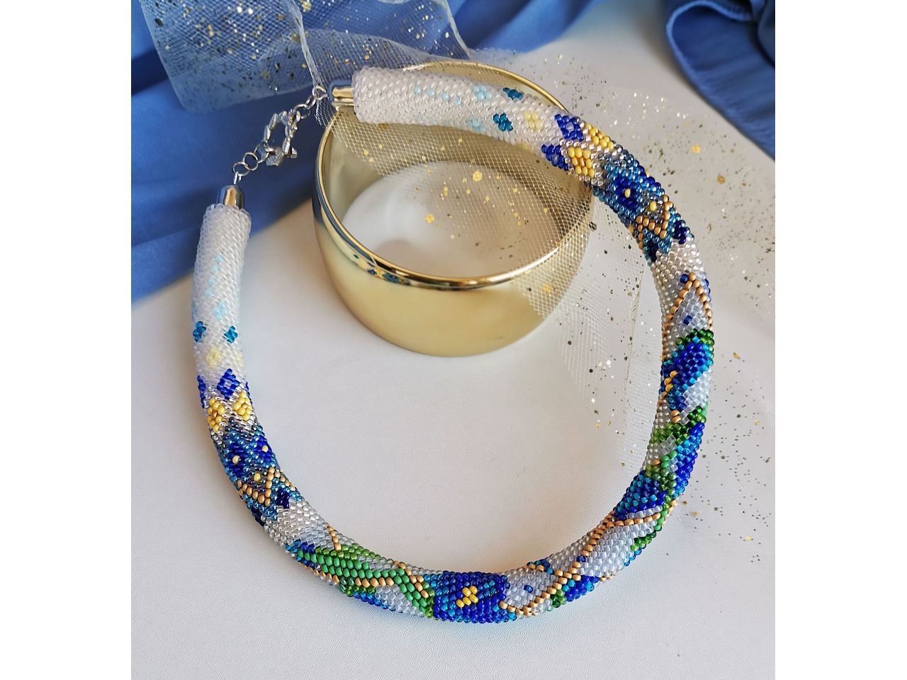 Чарівний джгут, зв'язаний з чеського бісеру. Унікальний аксесуар, що втілив в собі дух вишиванки, стане неповторним акцентом вашого образу. Це не просто прикраса, а настрій: спогад про теплі дні, про спокій природи і радість простих миттєвостей. Для тих, хто любить деталі з душею і хоче підкреслити свою індивідуальність - м'яко, елегантно і з особливим змістом. Довжина з застібкою близько 43 см, можливо продовжити ланцюжком. Більше моїх робіт в інст:tatianalevchenko165