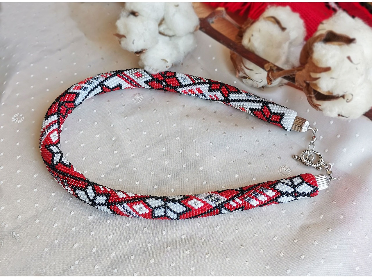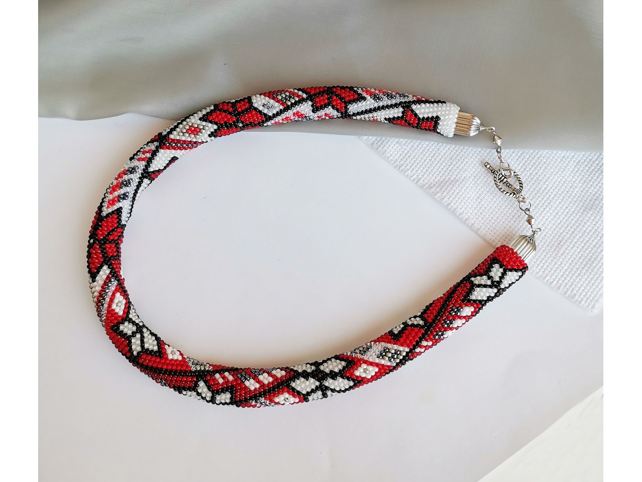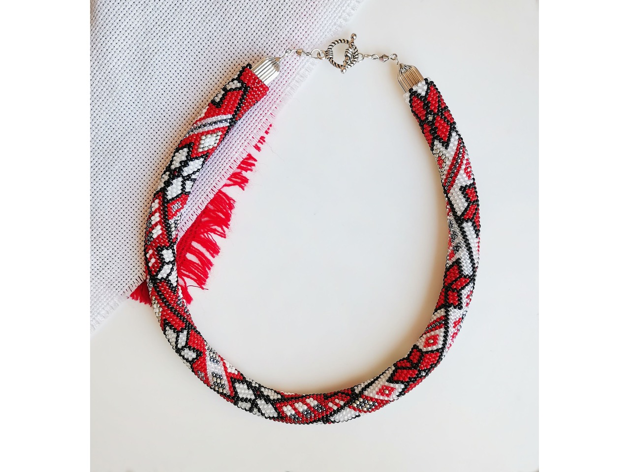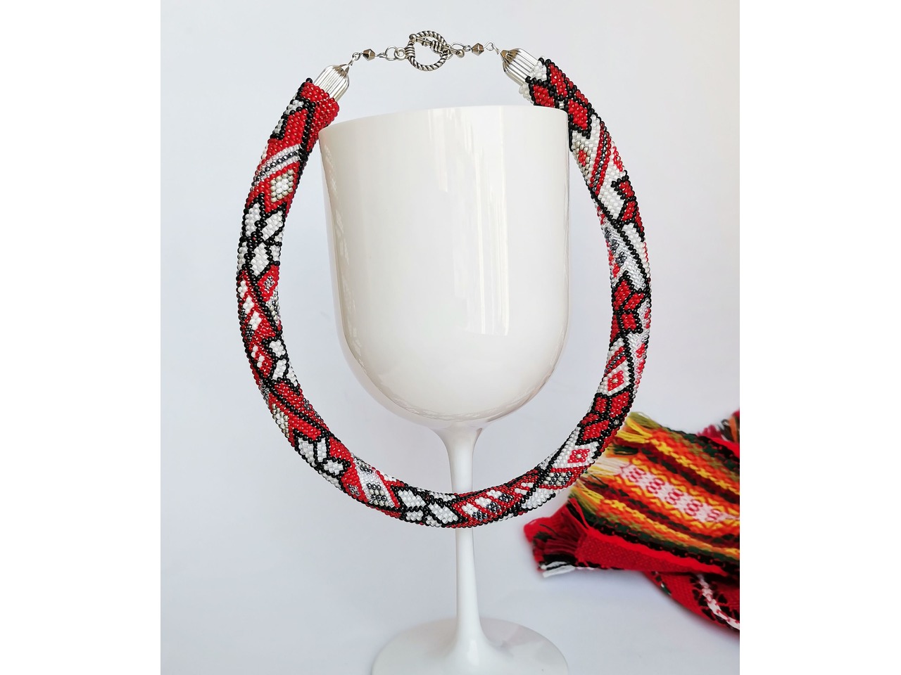 Джгут, зв'язаний із чеського бісеру в стилі "вишиванка". Захопитесь поєднанням сучасностi та етнiчного символiзму. Ця прикраса доповнить святковий образ та підкреслить вашу індивідуальність. Довжина із застібкою ок.45см, Більше моїх робіт в інст:tatianalevchenko165