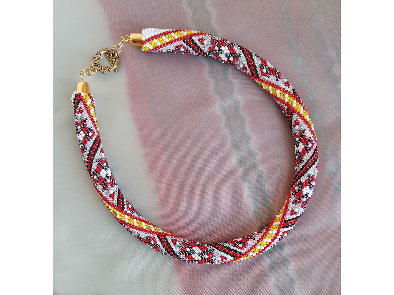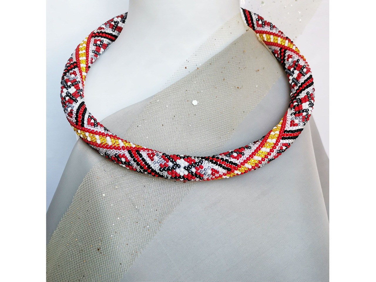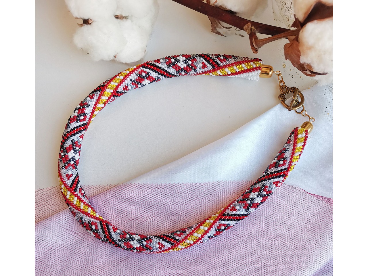 Джгут із чеського бісеру в стилі "вишиванка". Чарівна прикраса поєднує в собі сучасні тенденції та класичний дизайн, створюючи ідеальний баланс між старим і новим. Ніжне та витончене кольє додасть вашому образу унікальності та вишуканості. Довжина із застібкою ок.43см. Більше моїх робіт в інст:tatianalevchenko165